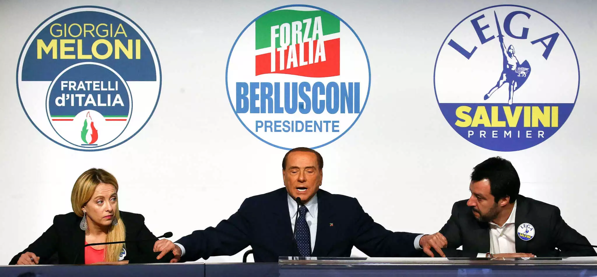 Το εθνικιστικό κόμμα της Τζόρτζια Μελόνι Αδέλφια της Ιταλίας (Fratelli d’Italia), το ευρωσκεπτικιστικό, επίσης ακροδεξιό κόμμα, Λέγκα του Ματέο Σαλβίνι και η δεξιά Forza Italia, του Σίλβιο Μπερλουσκόνι, μπορεί κάλλιστα να εξασφαλίσουν σαφή πλειοψηφία απόψε.