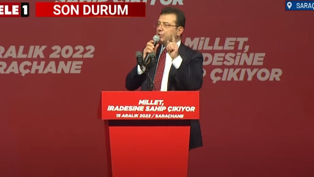 “Δεν φοβόμαστε! Δεν έχω δικαστές για να με προστατεύσουν αλλά έχω μαζί μου 16 εκατομμύρια Κωνσταντινουπολίτες και το έθνος μας”, συνέχισε, διαβεβαιώνοντας τους υποστηρικτές του ότι “όσο σκαιή και αν είναι η καταστολή, θα την διαλύσουμε”.