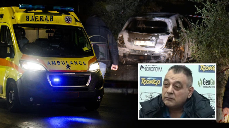 Το πυρπολημένο αυτοκίνητο στο οποίο βρέθηκε απανθρακωμένος ο επιχειρηματίας