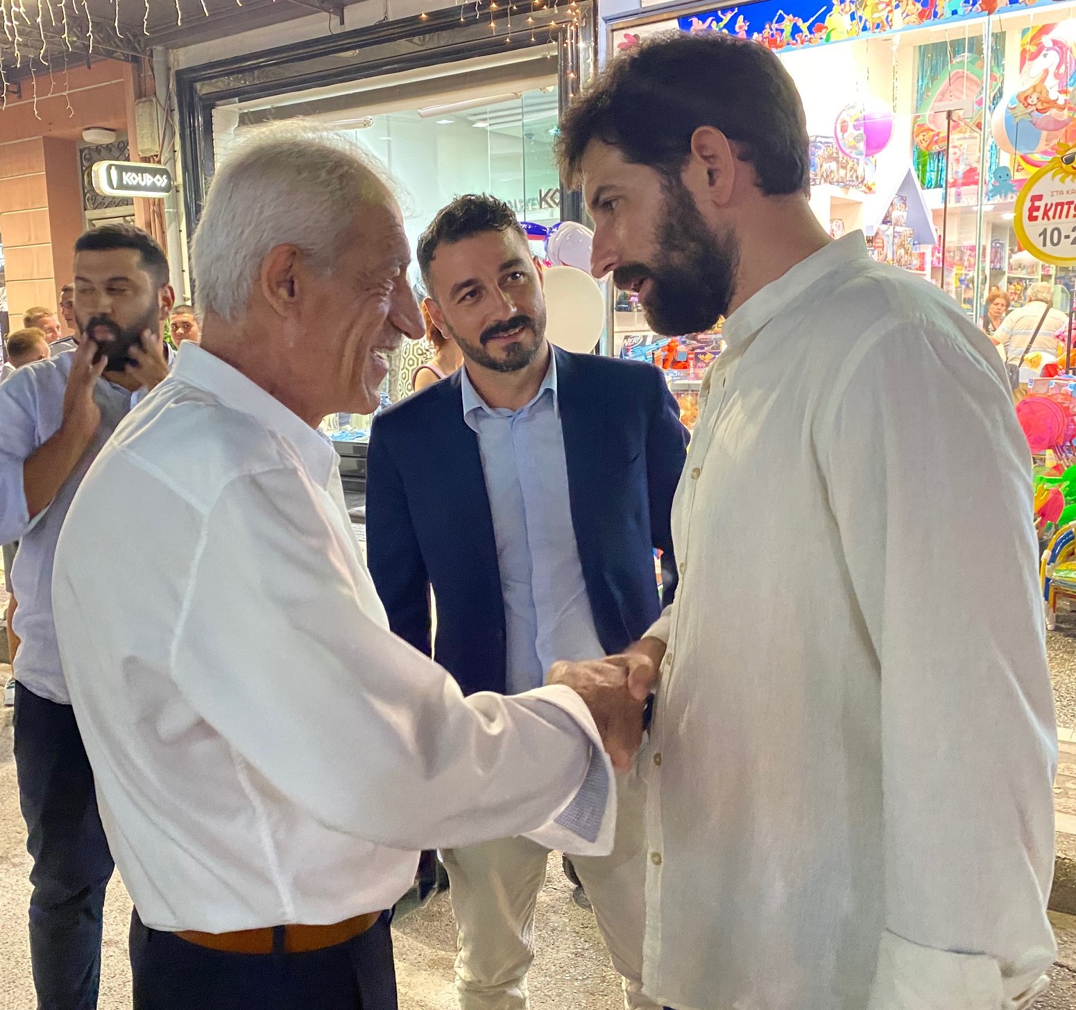 Ο Δήμαρχος Ήλιδας στη συνέχεια, μαζί με αντιδημάρχους, δημοτικούς συμβούλους και στελέχη της παράταξής του «ΗΛΙΔΑ ΝΕΑ ΕΠΟΧΗ», περπάτησαν στην αγορά της πόλης και συνομίλησαν με καταστηματάρχες και πολίτες και έζησαν τον παλμό της βραδιάς.