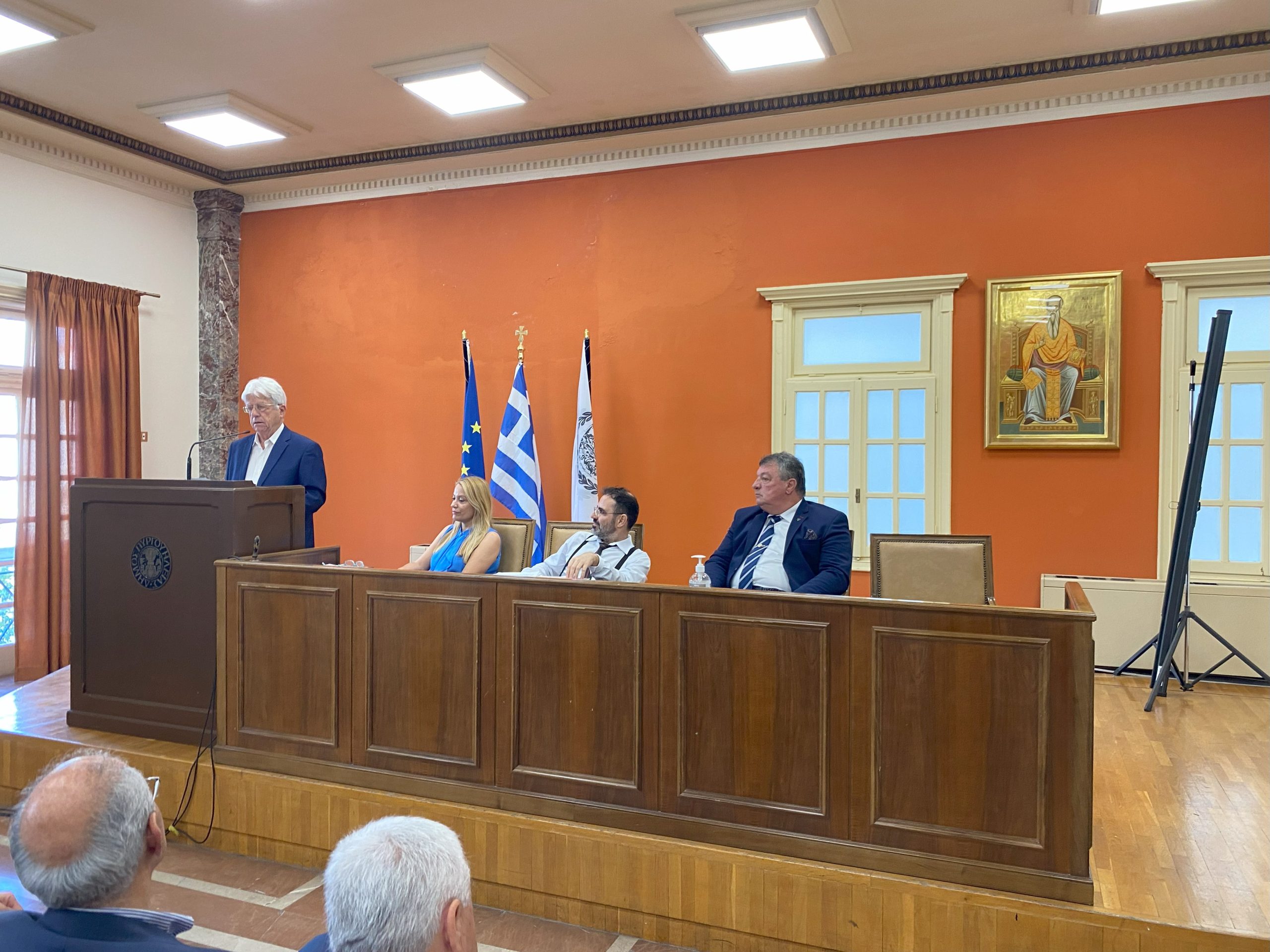 Ο Δήμαρχος Πύργου κ. Στάθης Καννής κατά την διάρκεια του χαιρετισμού του τόνισε πως τα κοινά στοιχεία, (ιστορικά, πολιτισμικά κ.α.) των τριών νησιών του Ιονίου με την Ηλεία και την Αχαΐα, καλλιεργούν την σκέψη πως μπορούν να αποτελέσουν μία διοικητική ενότητα.