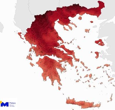 Στην υπόλοιπη χώρα κατά 1-2 °C, ενώ σε κανένα σημείο της Ελλάδας η απόκλιση της μέσης μέγιστης θερμοκρασίας δεν έπεσε κάτω από τους +0.5 °C.
