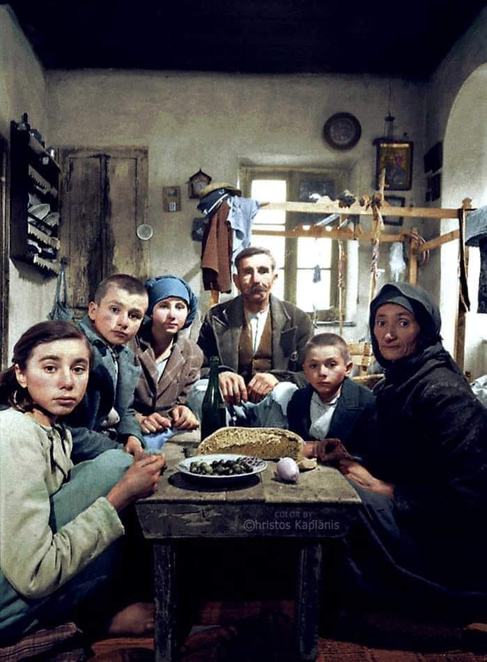 Ένα καρβέλι ψωμί, ένα κρεμμύδι κι ένα πιάτο ελιές για 6 στόματα. Κι όμως, αυτά τα στόματα δεν έπαυαν να λένε “δόξα τω Θεώ”. Σήμερα έχουμε τα πάντα, κι όμως πάλι λέμε “δεν έχουμε”.