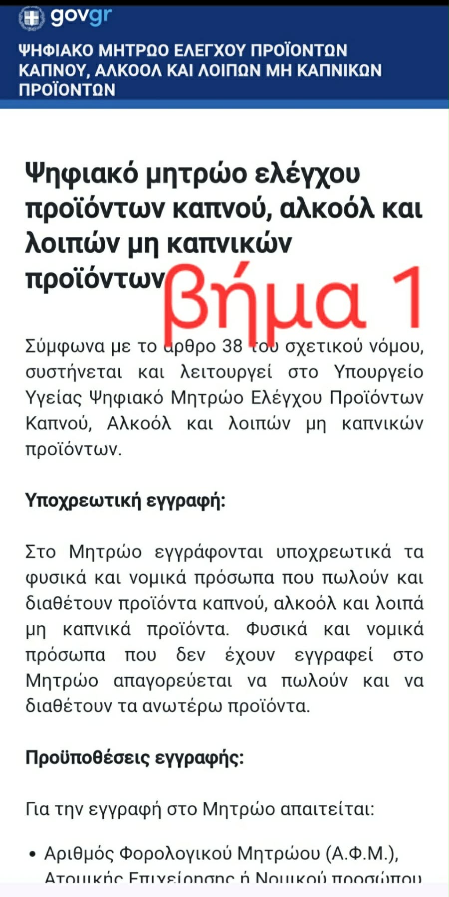 Το μητρώο σχεδιάζει και υλοποιεί η Γενική Γραμματεία Πληροφοριακών Συστημάτων και Ψηφιακής Διακυβέρνησης του υπουργείου Ψηφιακής Διακυβέρνησης, για λογαριασμό του υπουργείου Υγείας. Ο διττός στόχος είναι σαφής: αφενός η αποτελεσματικότερη εποπτεία της αγοράς, αφετέρου η προστασία της δημόσιας υγείας – με έμφαση στην πρόληψη πρόσβασης ανηλίκων σε προϊόντα καπνού και αλκοόλ.