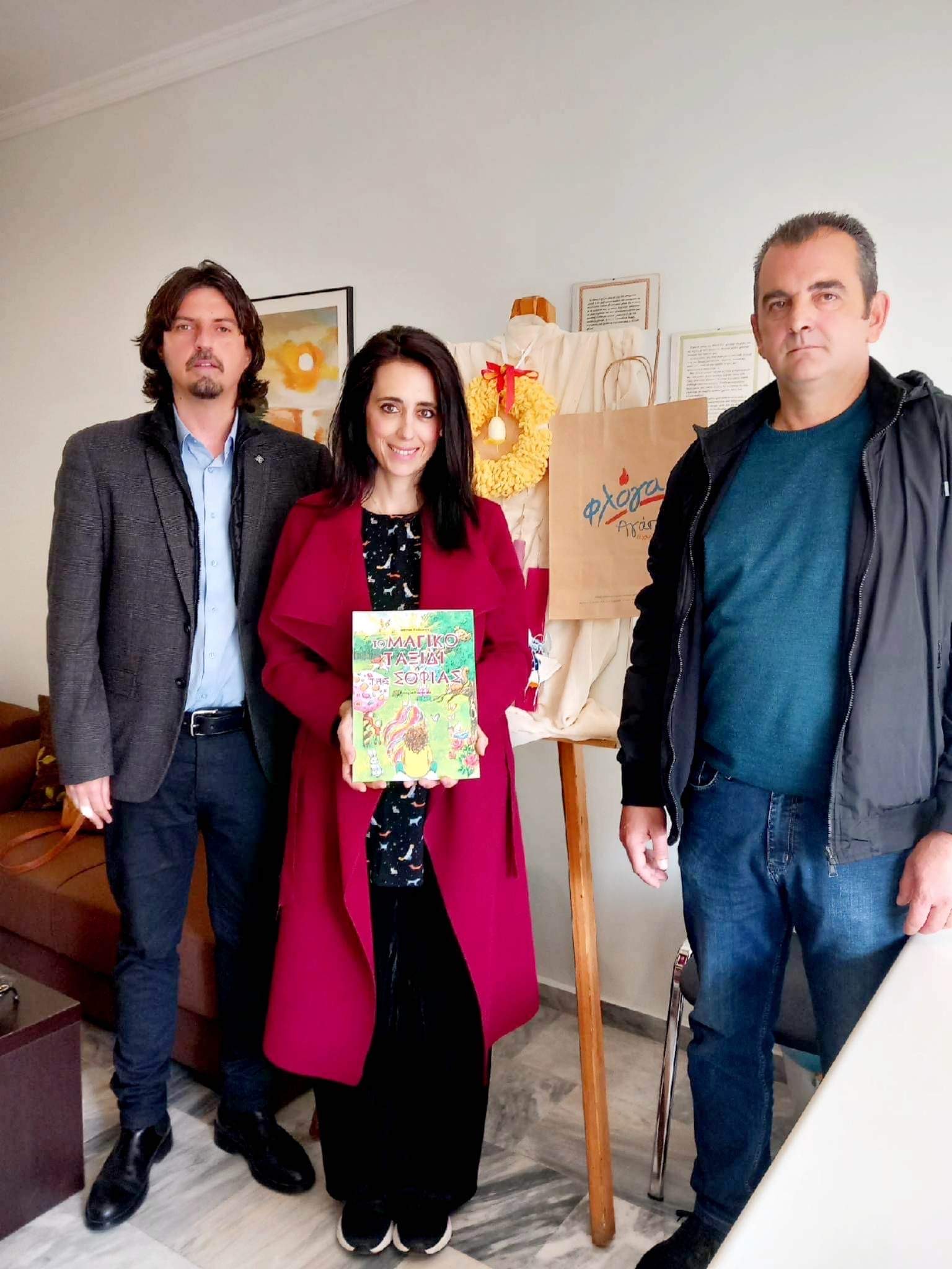 γραφεία του συλλόγου γονέων παιδιών με νεοπλασματική ασθένεια "ΦΛΟΓΑ" στην Πάτρα, όπου παρέδωσε ένα σεβαστό ποσό, το οποίο συγκεντρώθηκε από την πώληση του παραμυθιού με τίτλο Το μαγικό ταξίδι της Σοφίας" της ψυχολόγου – Αξιωματικού της ΕΛ.ΑΣ ΤΣΑΚΩΝΑ Ιωάννας.