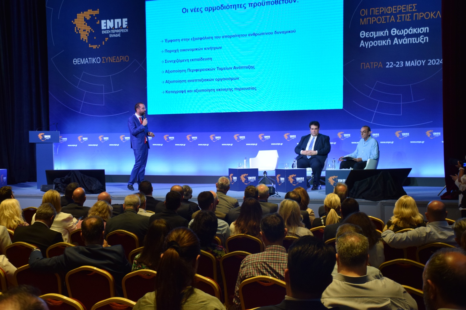 Την ολοκληρωμένη εισήγηση της Επιτροπής Θεσμών και Διαφάνειας της ΕΝΠΕ, που επί της ουσίας αποτελεί έναν οδικό χάρτη για την μετάβαση στην περιφερειακή διακυβέρνηση, παρουσίασε ο Περιφερειάρχης Δυτικής Ελλάδας Νεκτάριος Φαρμάκης και Πρόεδρος του Θεματικού Συνεδρίου που πραγματοποιήθηκε στην Πάτρα, κατά τη διάρκεια ειδικής εκδήλωσης που πραγματοποιήθηκε το απόγευμα της Τετάρτης 22 Μαΐου 2024, παρουσία του αναπληρωτή Υπουργού Εσωτερικών, Θεόδωρου Λιβάνιου.