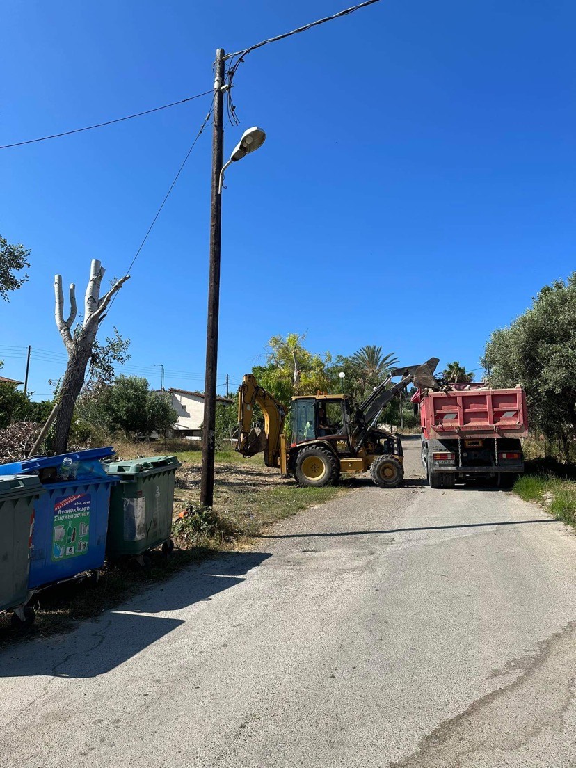 Συνεργεία του Δήμου υπό την επίβλεψη του αρμόδιου Αντιδημάρχου Παναγιώτη Βαγγελάκου καθάρισαν χαντάκια και μάζεψαν κλαδιά και ξερά χόρτα που ήταν επικίνδυνα για την πρόκληση πυρκαγιάς.