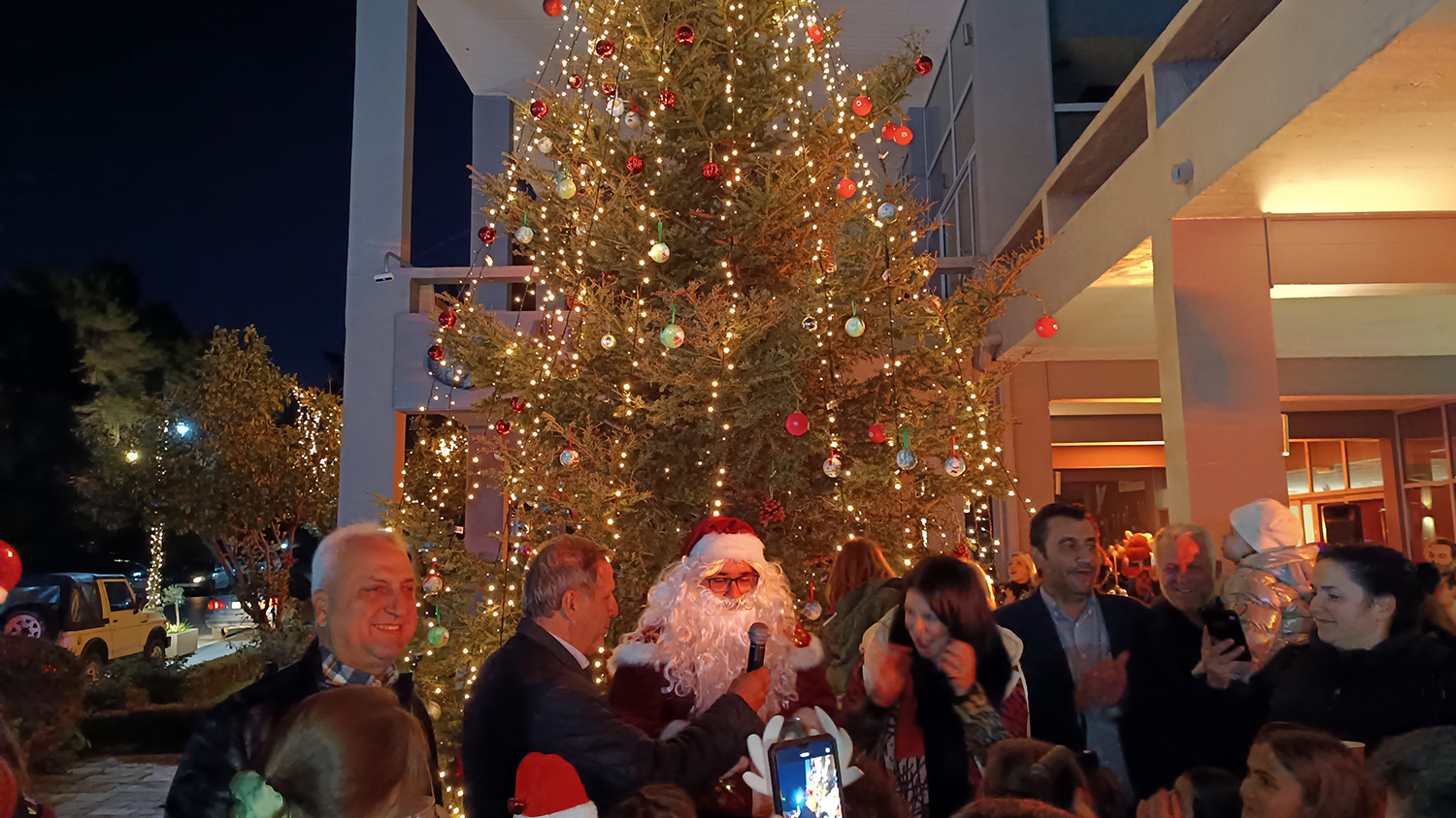 Πριν τη φωταγώγηση του δέντρου ο Δήμαρχος κ. Γιώργος Γεωργιόπουλος