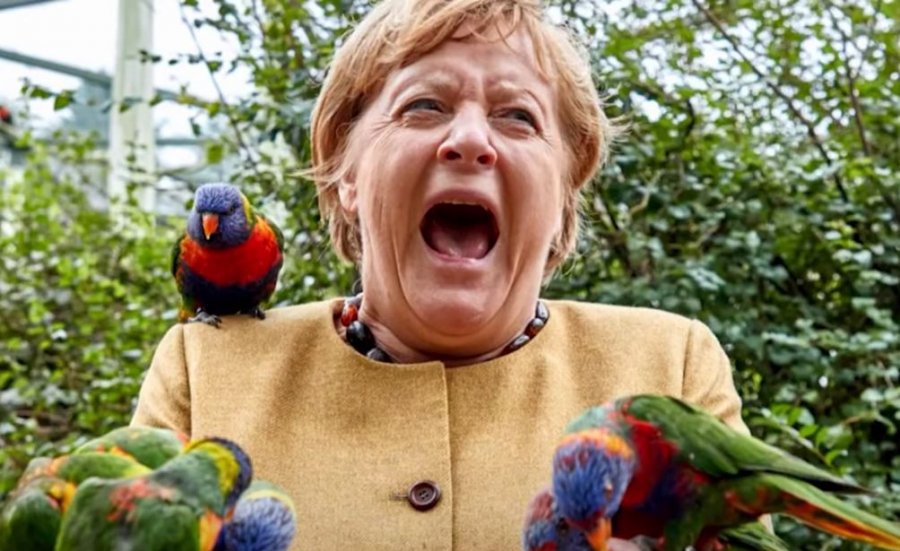 Ατυχής αποδείχθηκε η έμπνευση της Άνγκελα Μέρκελ να ταΐσει ένα σμήνος παπαγάλων σε πάρκο πτηνών στην εκλογική της περιφέρεια, το Μεκλεμβούργο – Πομερανία.