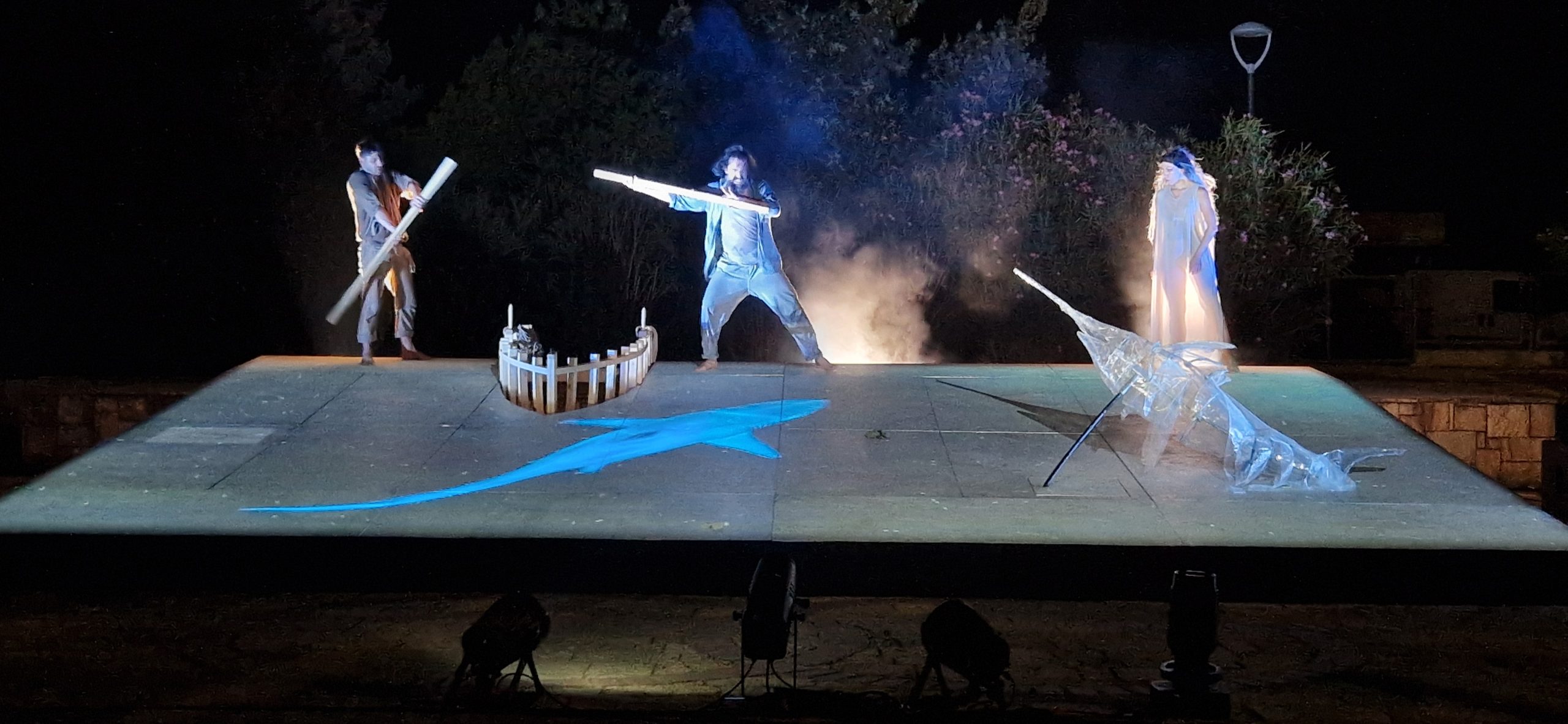 Με την παράσταση «Η Θάλασσα και ο Γέρος», διασκευή του εμβληματικού αριστουργήματος του νομπελίστα αμερικανού συγγραφέα Έρνεστ Χεμινγουέι, συνεχίστηκαν το βράδυ της Πέμπτης οι θεατρικές περιπλανήσεις του 12 ου Φεστιβάλ Πηνειού. Η περιπέτεια του Σαντιάγο –που ενσάρκωσε ιδανικά ο Τάσος Νούσιας- καθήλωσε τους θεατές του Ανοικτού Θεάτρου Καβασίλων «Χρήστος Μάλλιαρης» και τους παρέσυρε σε ένα ταξίδι αυτογνωσίας, σκιαγράφησης των ανθρώπινων ορίων και αναγνώρισης του μεγαλείου της Φύσης.