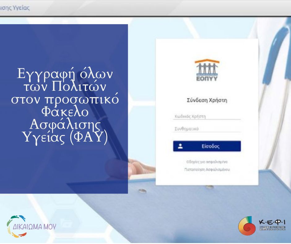 Εγγραφή όλων των Πολιτών στον προσωπικό Φάκελο Ασφάλισης Υγείας (ΦΑΥ) για να έχουν πρόσβαση σε στοιχεία που αφορούν δαπάνες υπηρεσιών υγείας