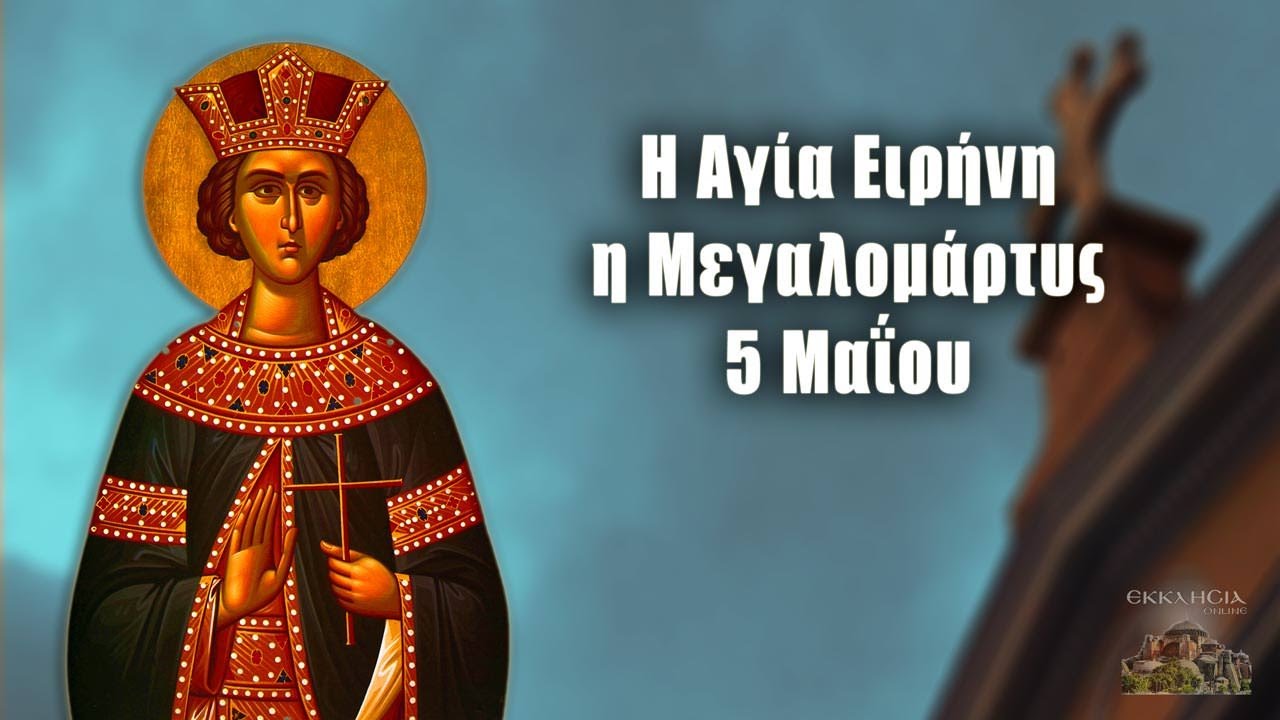 Η Αγία Ειρήνη η μεγαλομάρτυρας έζησε τον 4ο αιώνα μ.Χ. Το πρώτο της όνομα ήταν Πηνελόπη όμως όταν βαφτίστηκε Χριστιανή επέλεξε το όνομα Ειρήνη. Θεωρούνταν πολύ ευπαρουσίαστη γυναίκα και μάλιστα είχε πολύ υψηλή μόρφωση για την εποχή της.