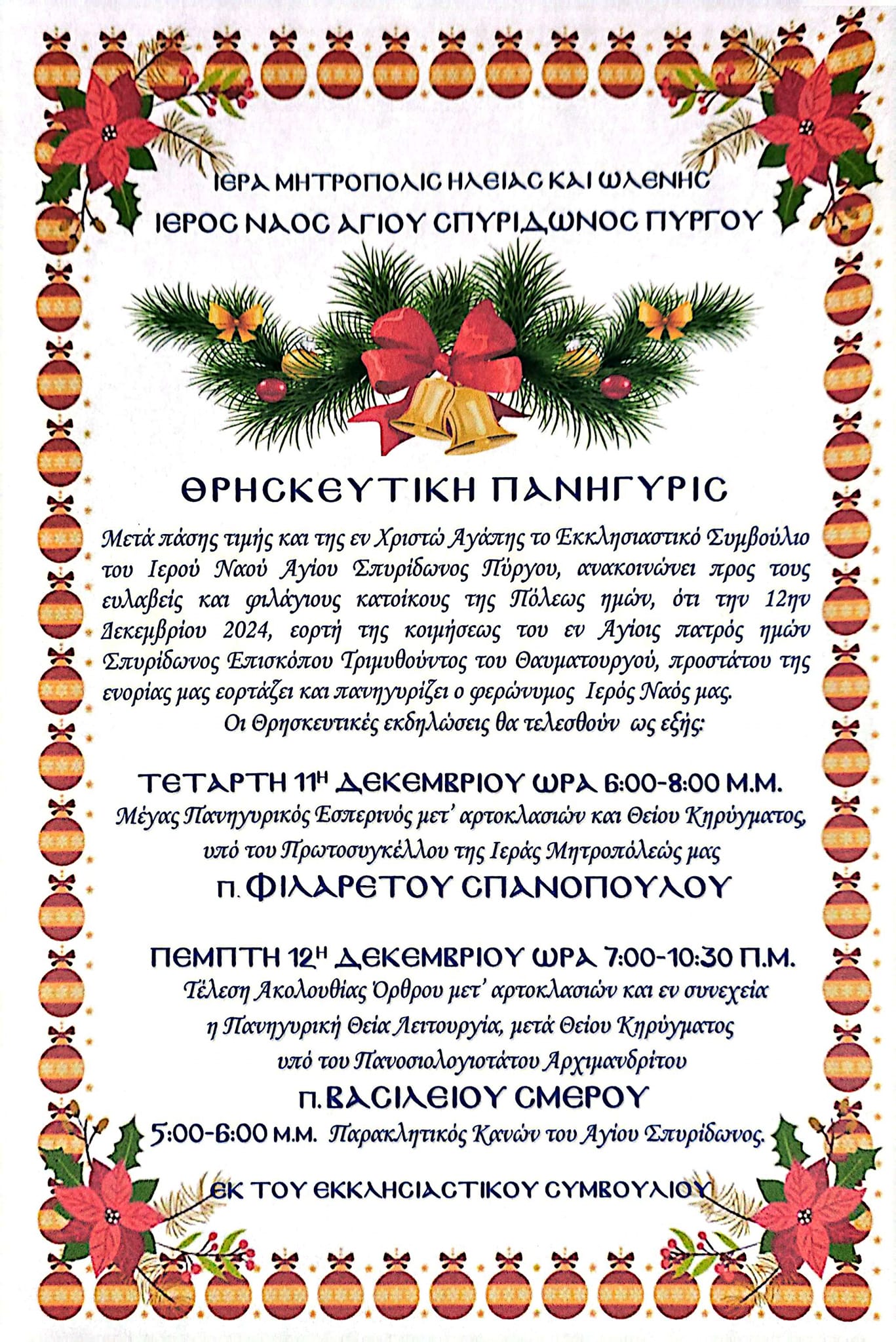 ΙΕΡΟΣ ΝΑΟΣ ΑΓΙΟΥ ΣΠΥΡΙΔΩΝΟΣ ΠΥΡΓΟΥ