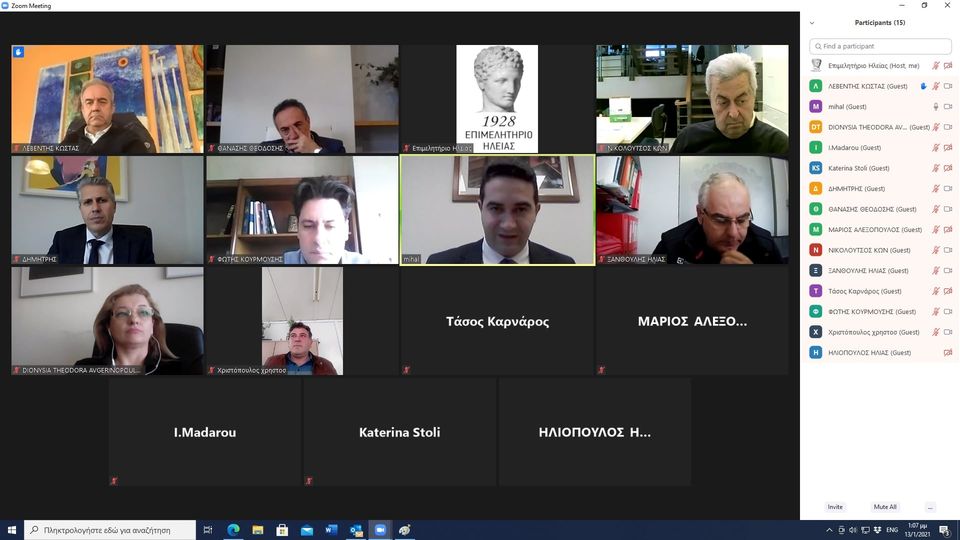 Την Τετάρτη 13/01/2021 το πρωί από 12.00 έως τις 14.00 έγινε η προγραμματισμένη Ενημερωτική τηλεδιάσκεψη με θέμα: «Ρύθμιση Οφειλών και Παροχή Δεύτερης Ευκαιρίας» με την παρουσία του Γενικού Γραμματεία Διαχείρισης Ιδιωτικού Χρέους και την Διοίκηση του Επιμελητηρίου Ηλείας.