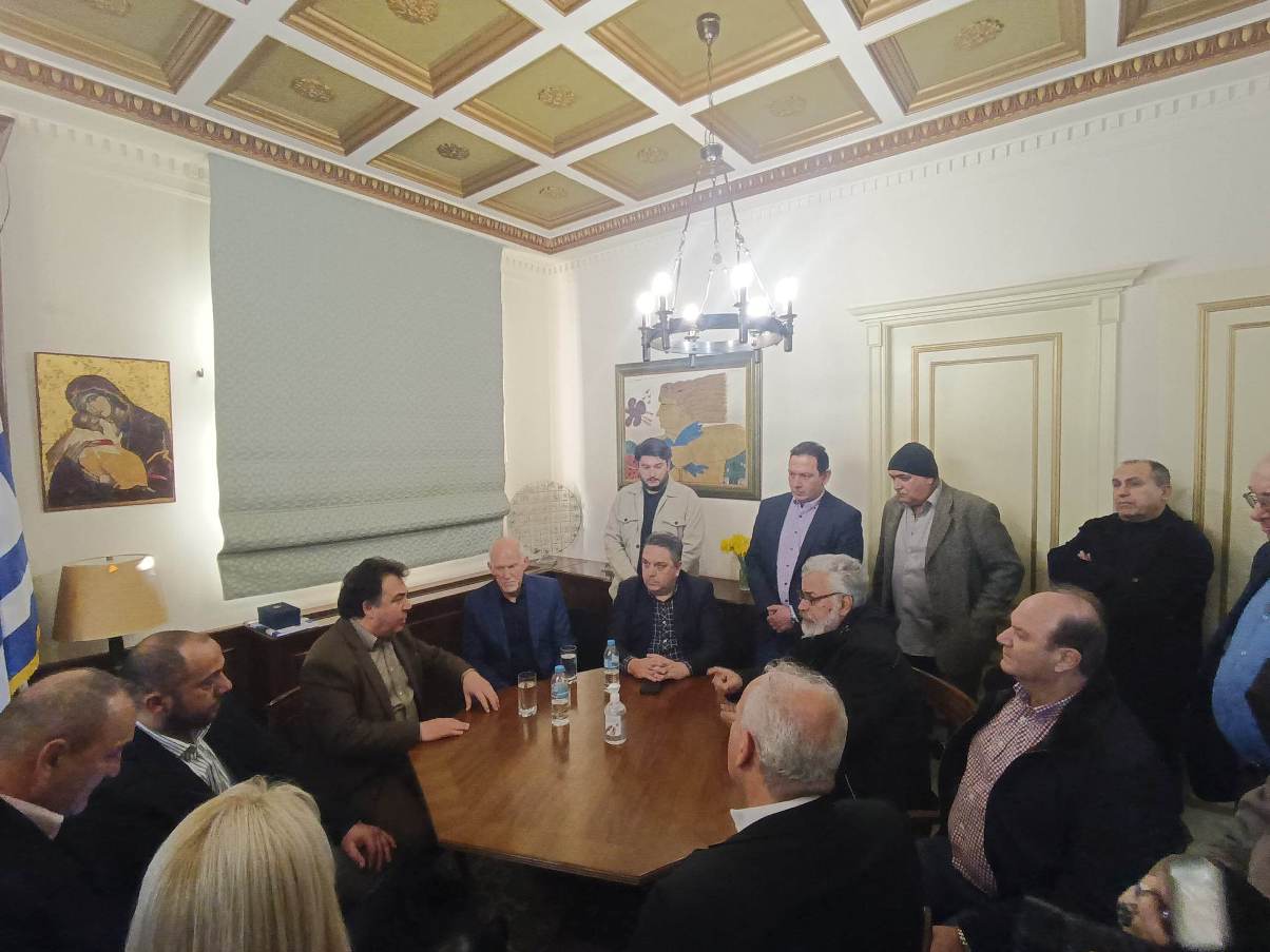 κατά την επίσκεψή του στην Ηλεία, όπου τον υποδέχτηκε ο Δήμαρχος Πύργου Παναγιώτης Αντωνακόπουλος, συνοδευόμενος από αντιδημάρχους και τοπικά στελέχη του κόμματος.