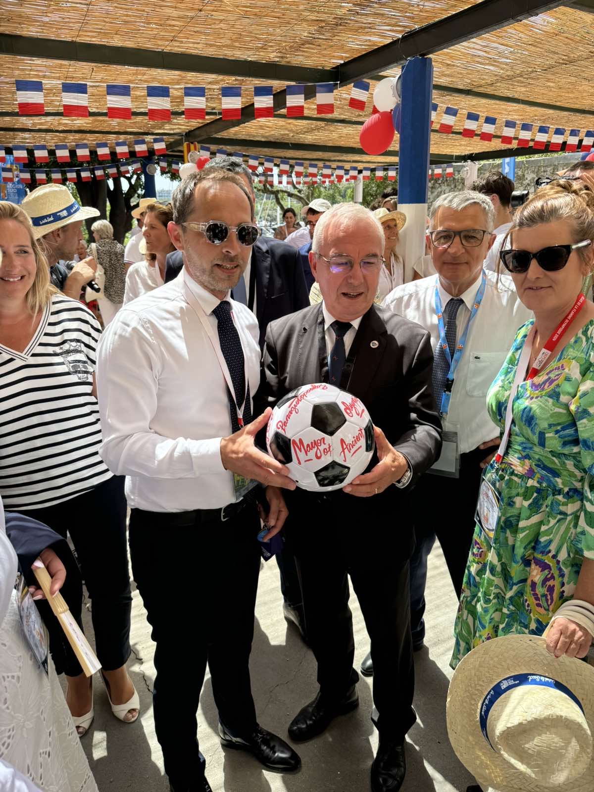 Προσκεκλημένοι του Δημάρχου της Αντίμπ, Jean Leonetti, ήταν ο Δήμαρχος Αρχαίας Ολυμπίας, Αριστείδης Παναγιωτόπουλος, καθώς και μέλη της Δημοτικής Αρχής. Η 7μελής αποστολή της Ελλάδας επισκέφτηκε την αδελφοποιημένη πόλη Αντίμπ, με αφορμή τη διέλευση της Ολυμπιακής Φλόγας ενόψει των Ολυμπιακών Αγώνων «Paris 2024» και τον εορτασμό των 84 ετών από το κάλεσμα του Γάλλου Στρατιωτικού και Πολιτικού Ντε Γκωλ, για αντίσταση κατά τον Β’ Παγκόσμιο Πόλεμο.