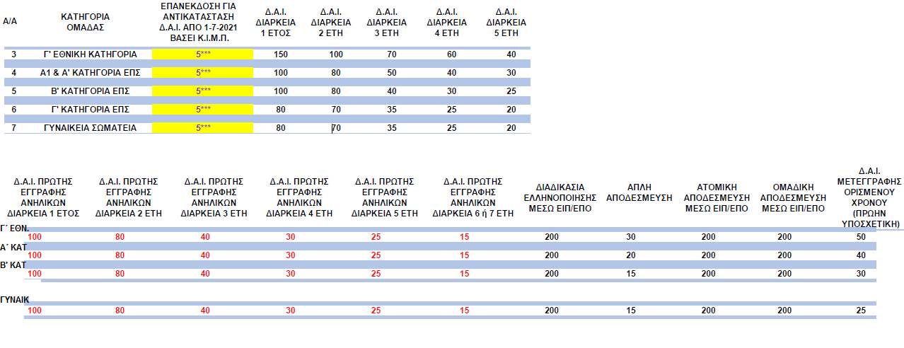 Η διάρκεια όλων των δελτίων που θα αντικατασταθούν/επανεκδοθούν, από 1/7/2021