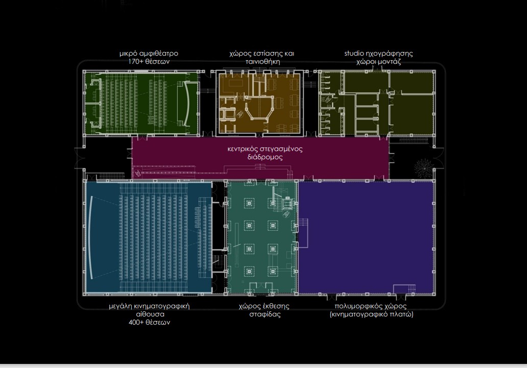 Κινηματογραφική Αίθουσα 400+ θέσεων (θα λειτουργεί με τις πλέον σύγχρονες προδιαγραφές ακουστικής, ορατότητας, εικόνας και ήχου)