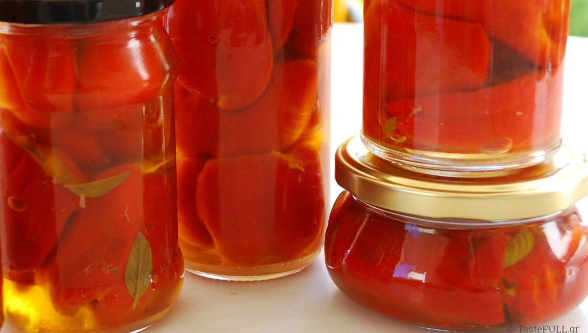 Αφού τις ξεφλουδίσουμε, τις βάζουμε σε τάπερ ή γυάλινο βάζο με καπάκι. Φτιάχνουμε ένα μίγμα λαδόξιδου, με αναλογία ένα προς ένα, δηλαδή η ποσότητα του ξυδιού να είναι ίση με την ποσότητα του ηλιελαίου. Οι πιπεριές πρέπει να είναι εντελώς σκεπασμένες από το λαδόξιδο.