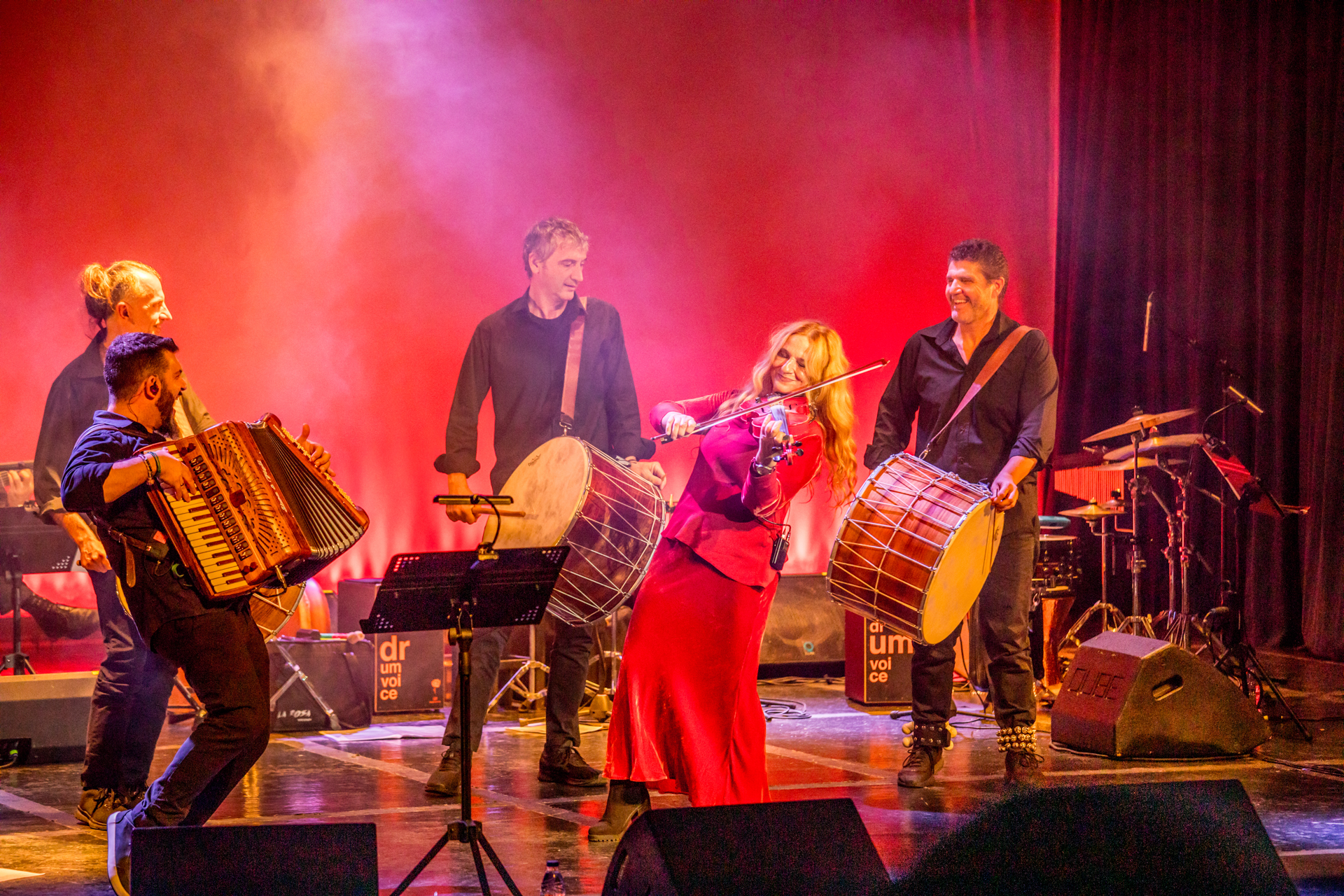 το δοξάρι και το βιολί της, το κόκκινο χρώμα σήμα κατατεθέν της και την κινηματογραφικών αποχρώσεων μουσική της, μας υπόσχεται μια μαγική βραδιά.
