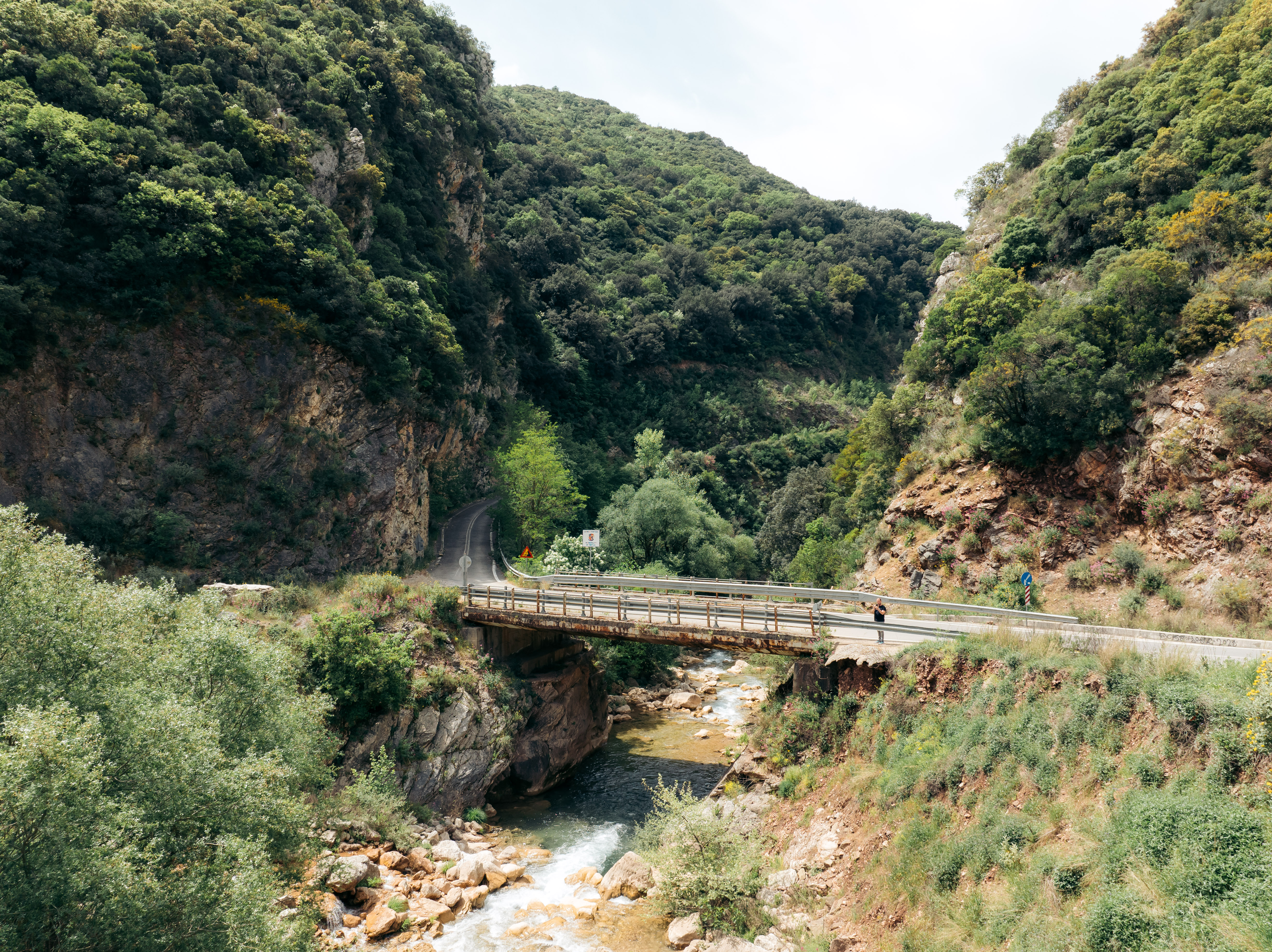 Δεν επιλέξαμε να κατέβουμε από εδώ αλλά συνεχίσαμε, περάσαμε τη γέφυρα Νέδα, η οποία αποτελεί και το σημείο που αφήσαμε πίσω τον νομό Ηλείας και μπήκαμε στη Μεσσηνία. Από το χωριό Πλατάνια που είναι και το πρώτο που θα συναντήσει κανείς στη Μεσσηνία, κατεβήκαμε προς το ποτάμι.
