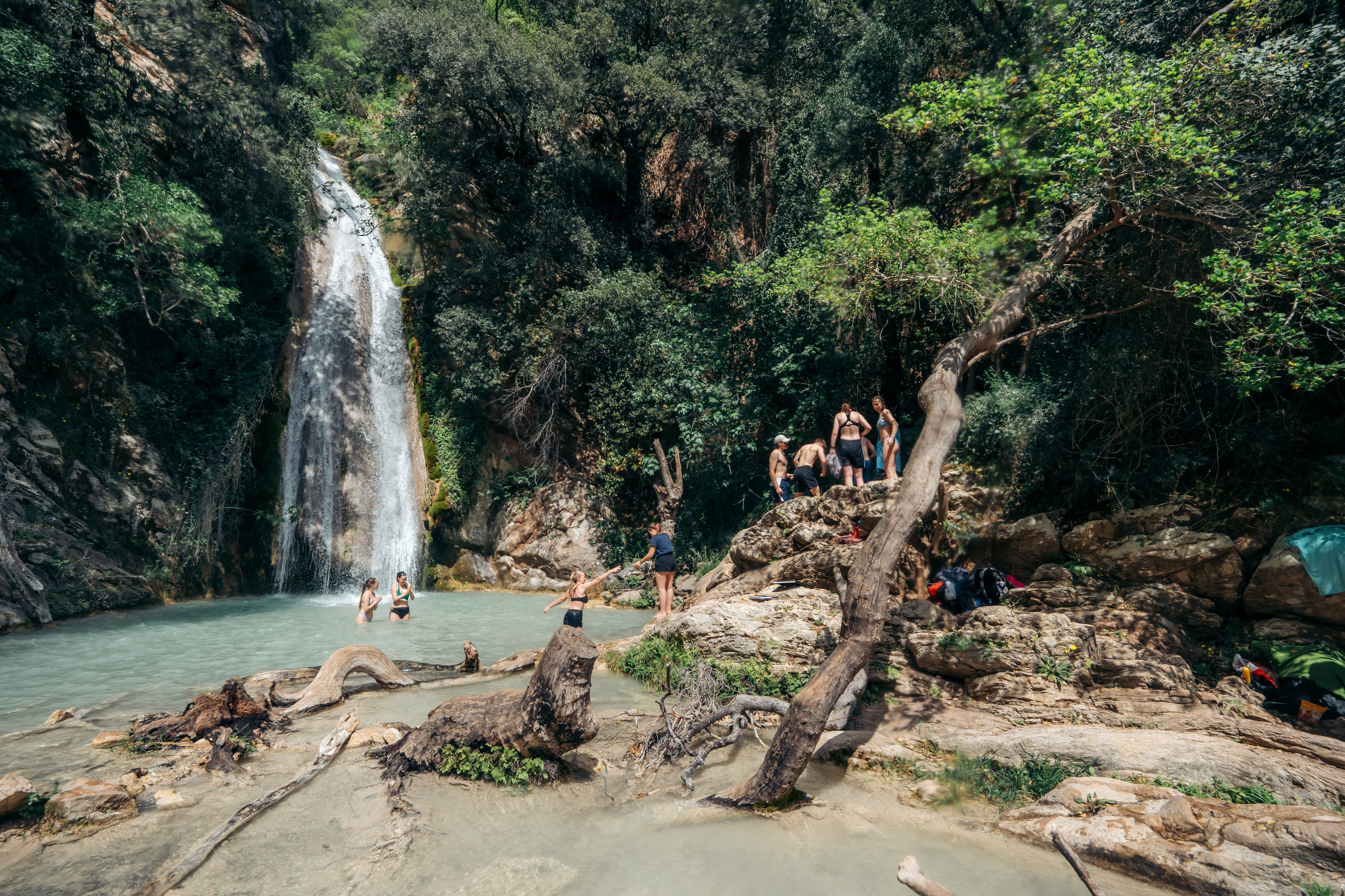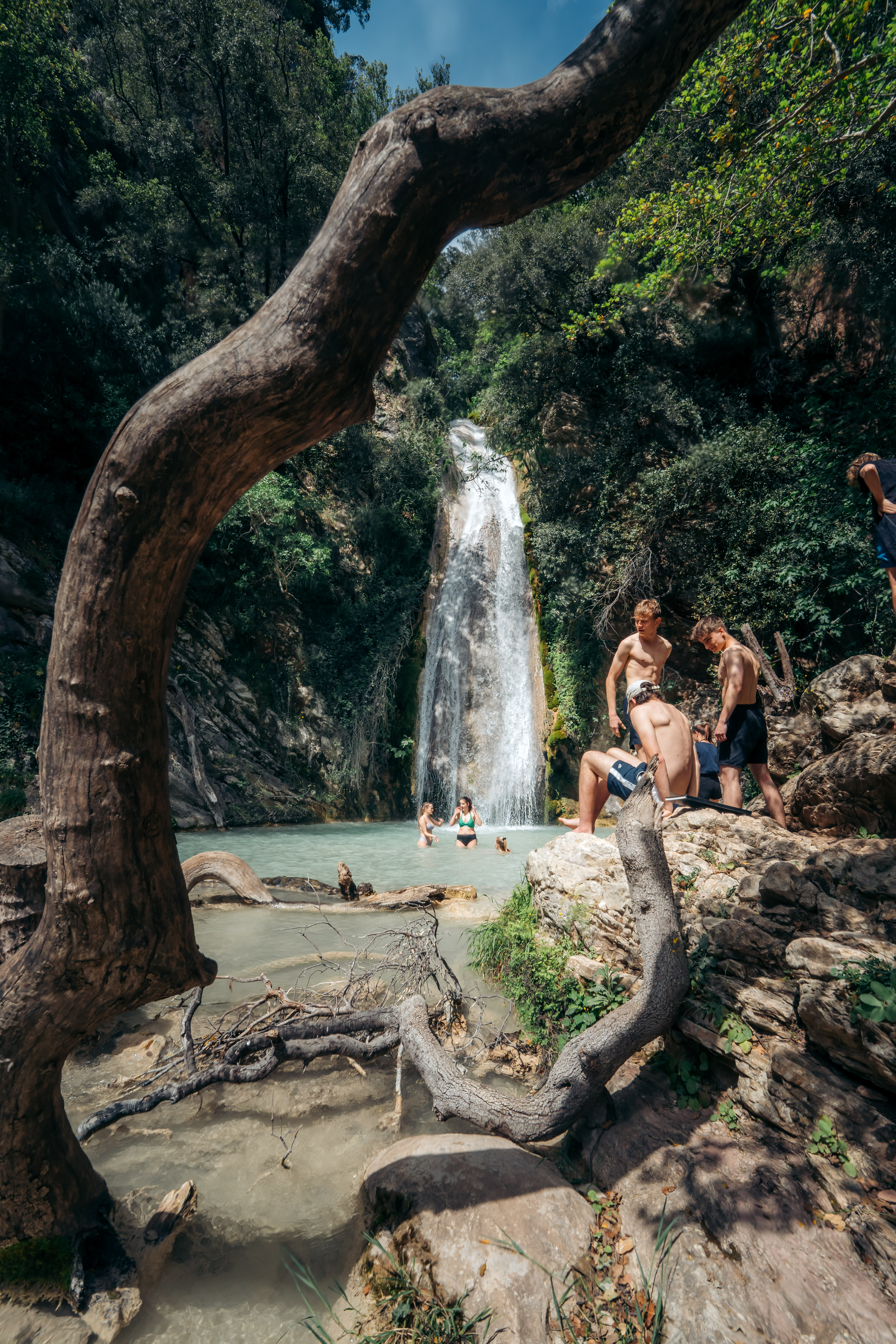 Φθάνοντας θα συναντήσουμε τον πρώτο, τον μικρό καταρράκτη και αφού περάσουμε από μία ξύλινη γέφυρα, θα συνεχίσουμε λίγο ακόμη για τον μεγάλο. Εκεί, συναντήσαμε δεκάδες παιδιά από τη Γερμανία που είχαν επισκεφθεί την περιοχή, στο πλαίσιο εκπαιδευτικής εκδρομής. Κάποιοι κάθονται στα βράχια και διαβάζουν βιβλίο, άλλοι κολυμπούν στα παγωμένα νερά του ποταμού, ενώ υπάρχουν και εκείνοι που ζωγραφίζουν.