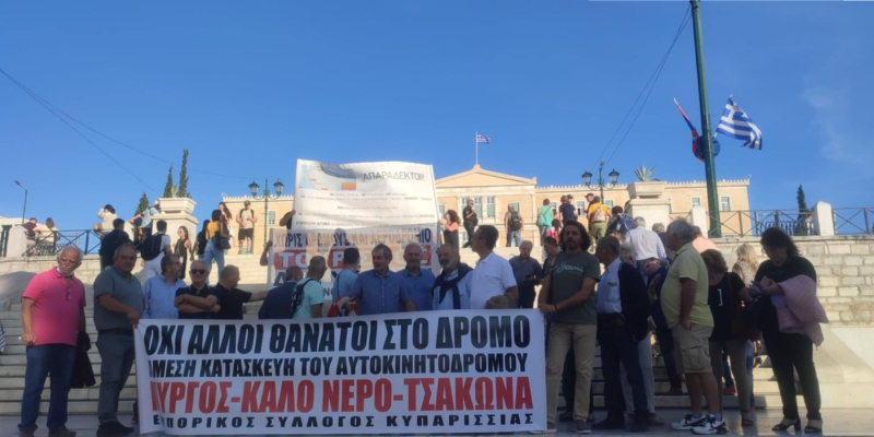 Συμβολική αλλά με δυναμική ήταν η συγκέντρωση διαμαρτυρίας που έγινε χτες για τον οδικό άξονα Πύργος – Καλό Νερό – Τσακώνα, στην πλατεία Συντάγματος από φορείς και συλλόγους Ηλείας και Μεσσηνία ως μια προσπάθεια πίεσης προς την κυβέρνηση ώστε να προχωρήσει το έργο.