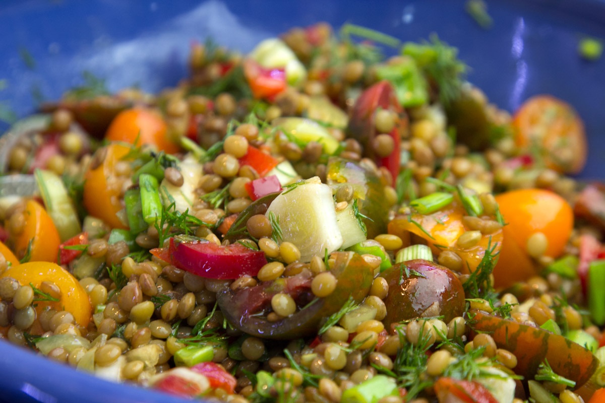 Σαλάτα με φακές και πολύχρωμα ντοματίνια