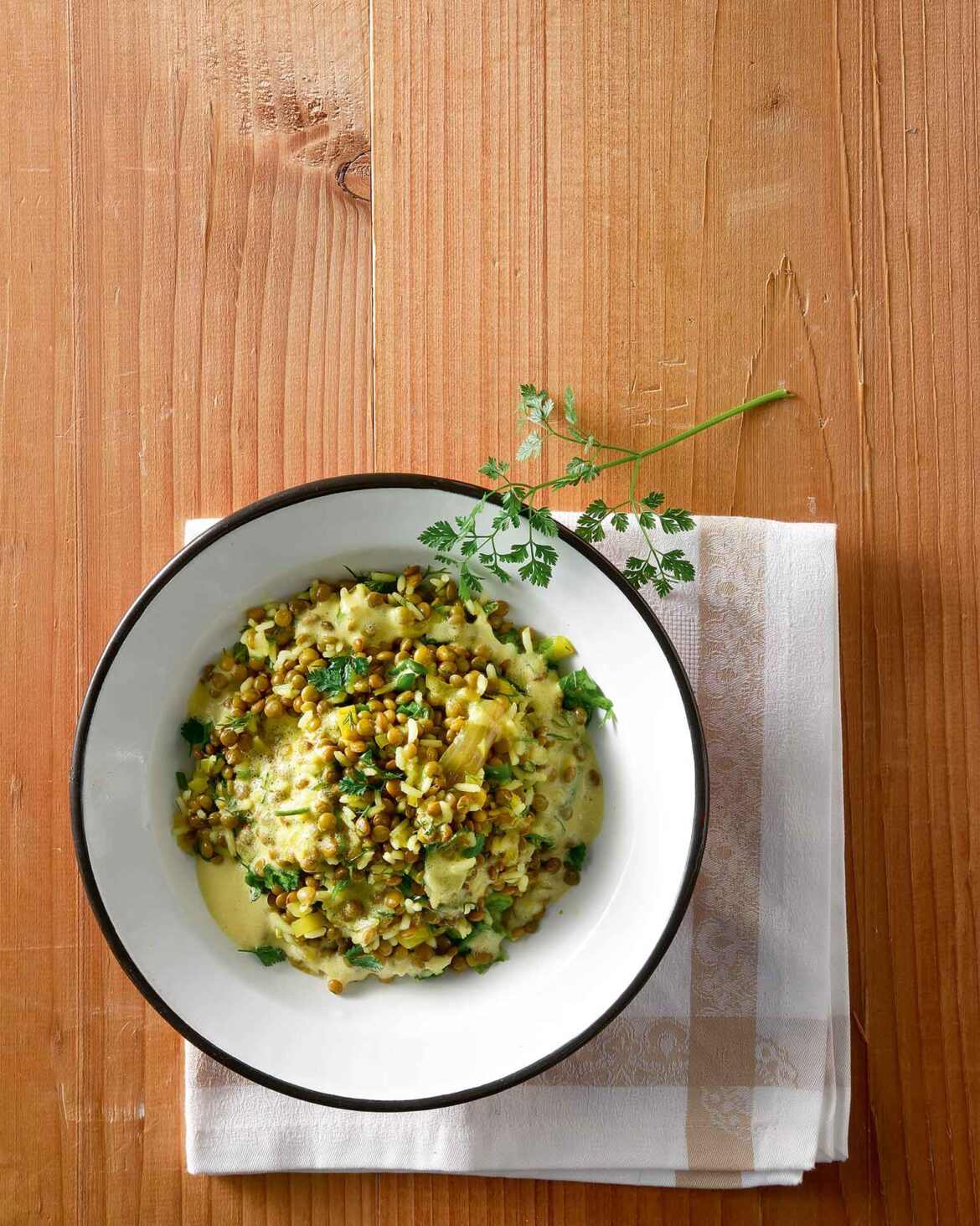 - Μαγειρεύουμε για άλλα 20 λεπτά, μέχρι να μαλακώσουν οι φακές και να φουσκώσει το ρύζι. Ελέγχουμε τα υγρά και, αν χρειάζεται, προσθέτουμε λίγο από το νερό που κρατήσαμε.