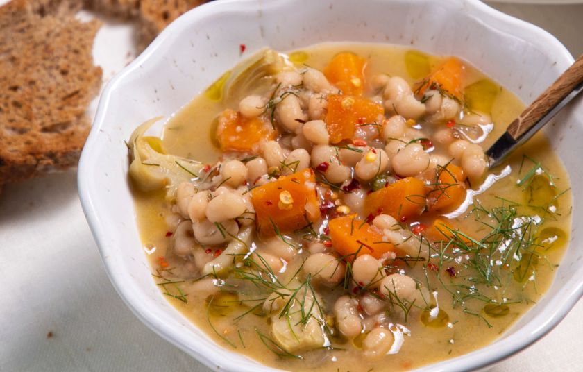 Φτιάχνουμε την κλασική φασολάδα, λεμονάτη. Την αναβαθμίζουμε ακόμη περισσότερο με πιπεριές, πράσο και μουστάρδα.