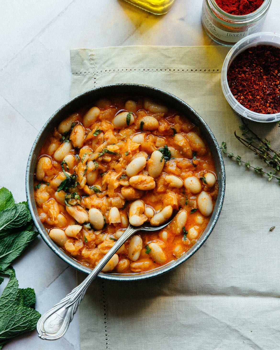 - Την αδειάζουμε στη φασολάδα, σκορπίζουμε τον δυόσμο και ανακατεύουμε απαλά. Αποσύρουμε από τη φωτιά.