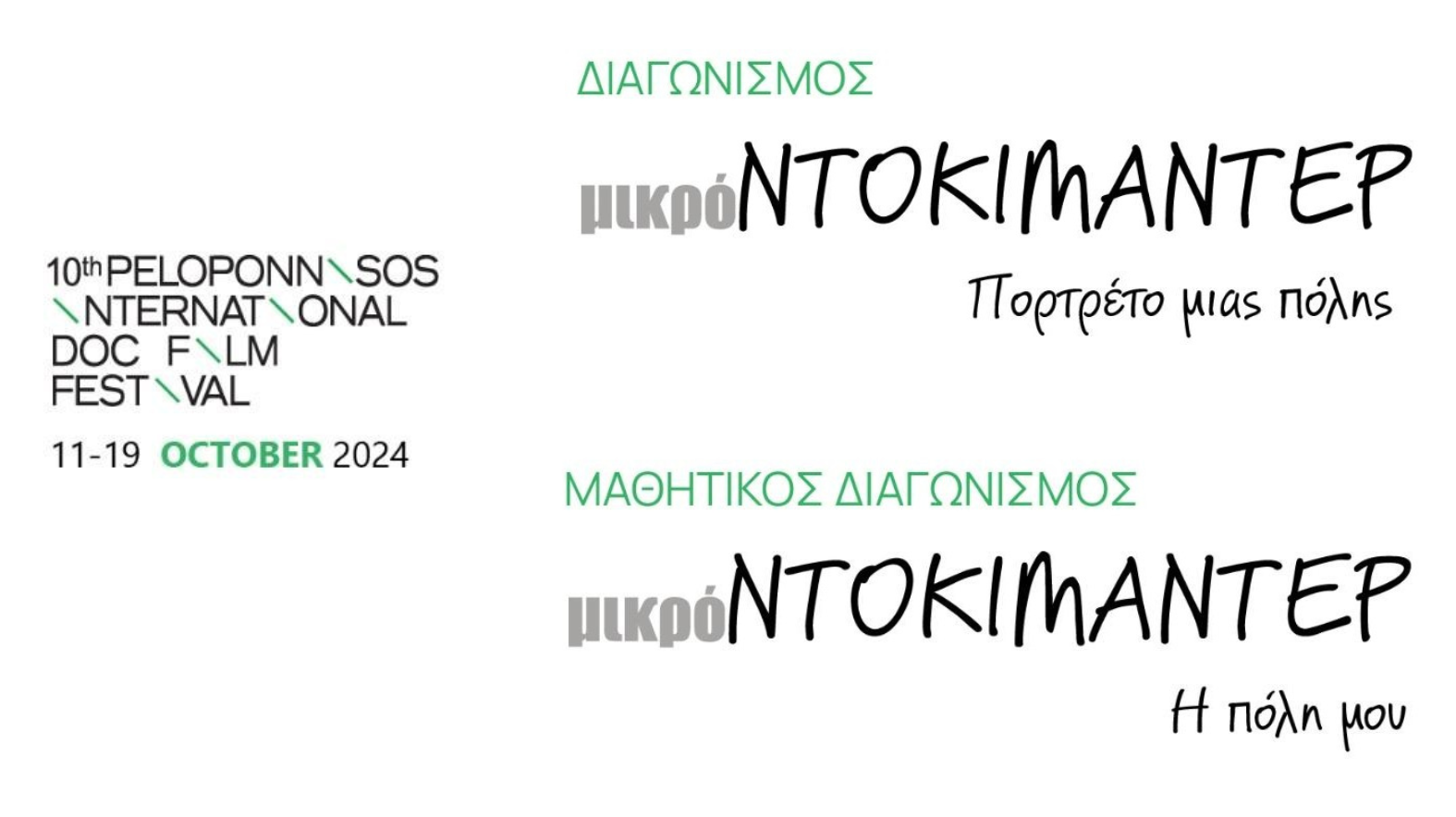 Το 10ο Διεθνές Φεστιβάλ Ντοκιμαντέρ Πελοποννήσου προκηρύσσει για τον εορτασμό των δέκα χρόνων δημιουργικής πορείας του, έναν Διαγωνισμό για μαθητές σχολείων δευτεροβάθμιας εκπαίδευσης με θέμα το αφιέρωμα της φετινής διοργάνωσης: Πόλεις του κόσμου.
