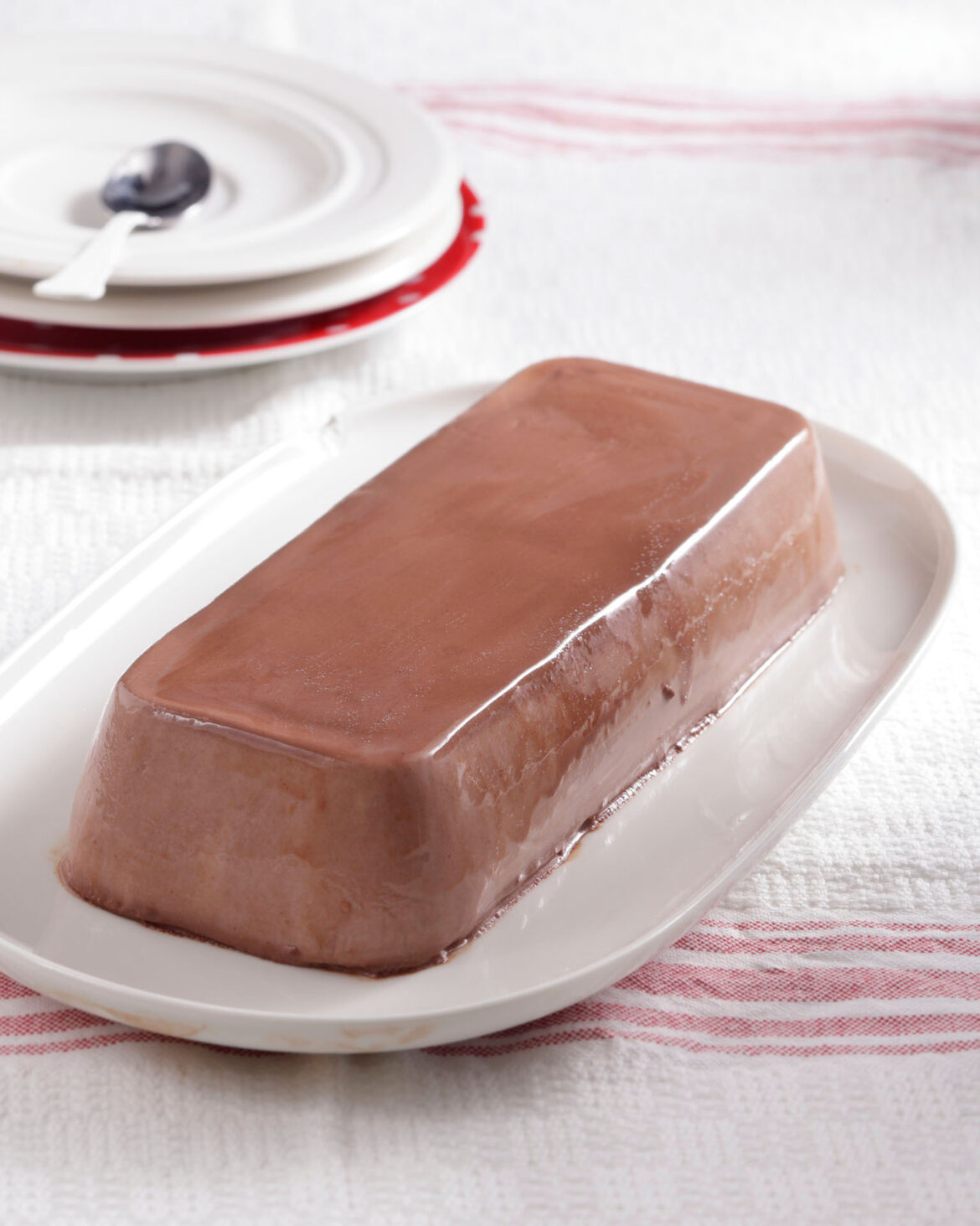 - Ξεφορμάρουμε το εύκολο ζελέ σοκολάτας βουτώντας στιγμιαία τη φόρμα σε καυτό νερό και αναποδογυρίζοντάς τη σε μια πιατέλα.