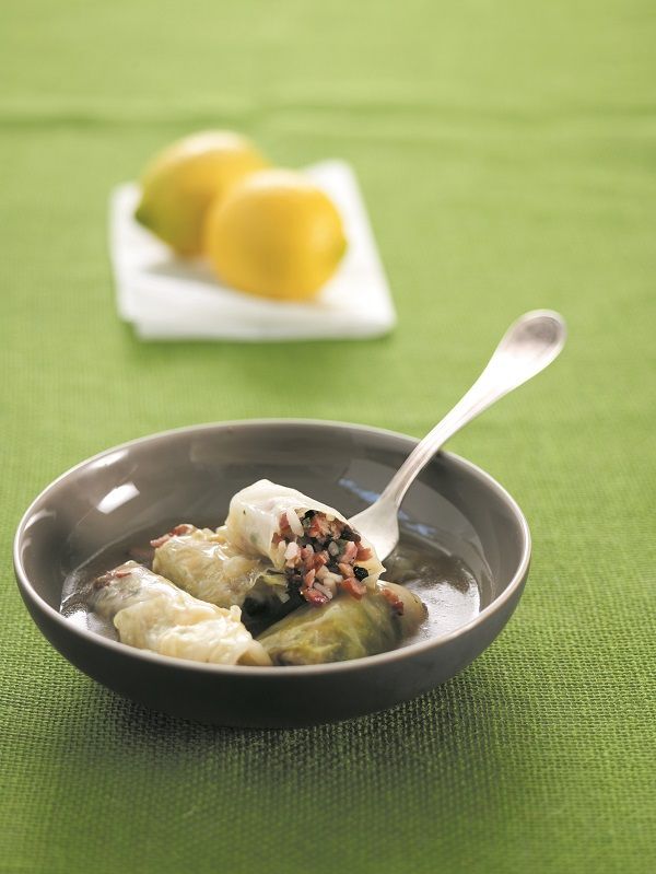 Λαχανοντολμάδες με καστανό ρύζι και καπνιστό χοιρινό