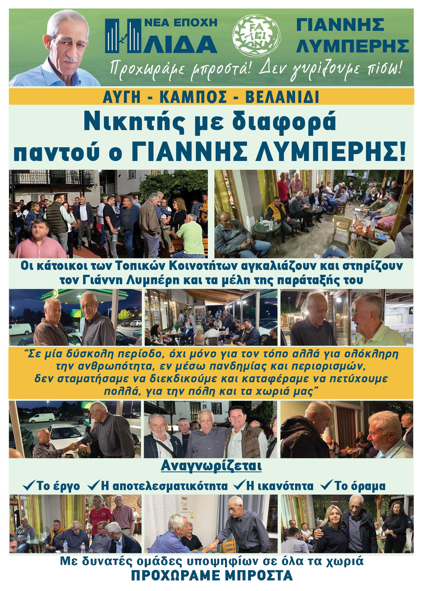 Γ. Λυμπέρης: Οι κάτοικοι των κοινοτήτων Αυγής, Κάμπου & Βελανιδίου τον στηρίζουν