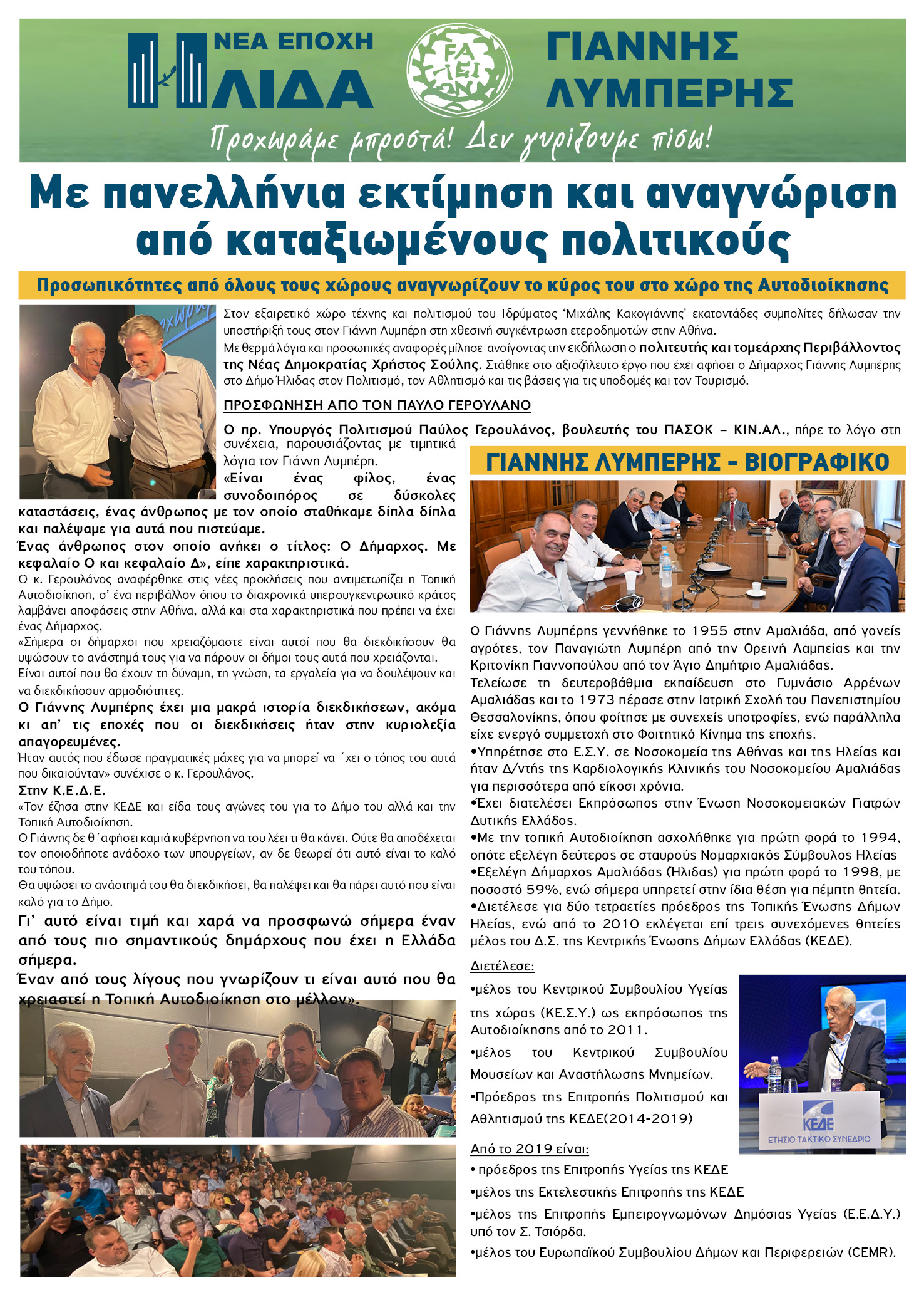 Γ. Λυμπέρης: Παννελήνια εκτίμηση & αναγνώριση από καταξιωμένους πολιτικούς
