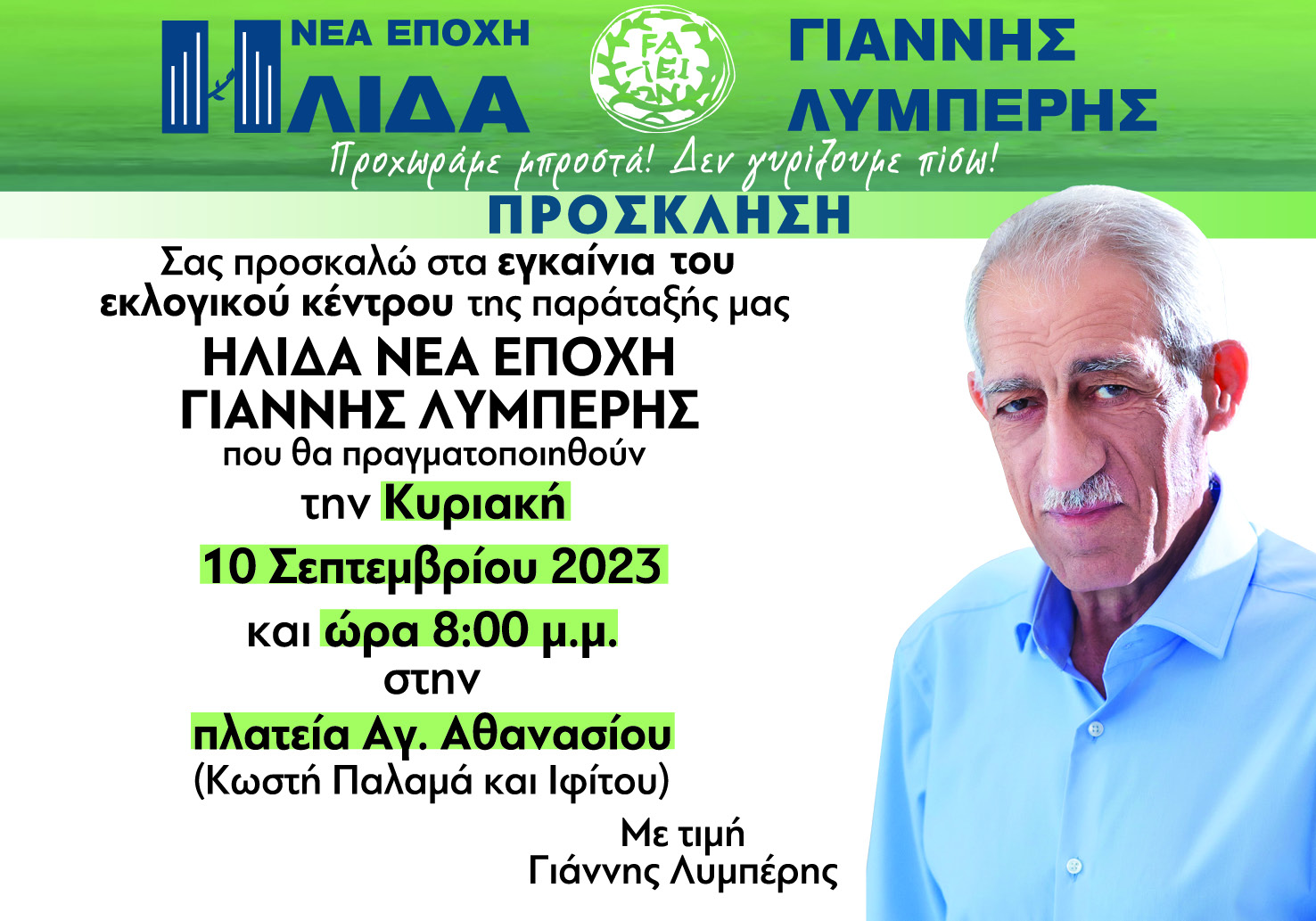 Γ. Λυμπέρης: Την Κυριακή 10/9 τα εγκαίνια του εκλογικού του κέντρου