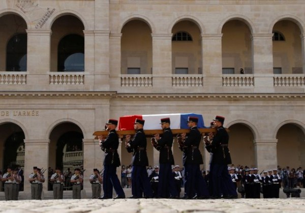 Το φέρετρό του καλυμμένο με τη γαλλική σημαία, μεταφέρθηκε στην αυλή του στρατιωτικού μουσείου των Απομάχων, όπου είναι θαμμένος ο Ναπολέοντας, για την επίσημη τελετή, όπως αναφέρει το ΑΠΕ – ΜΠΕ.