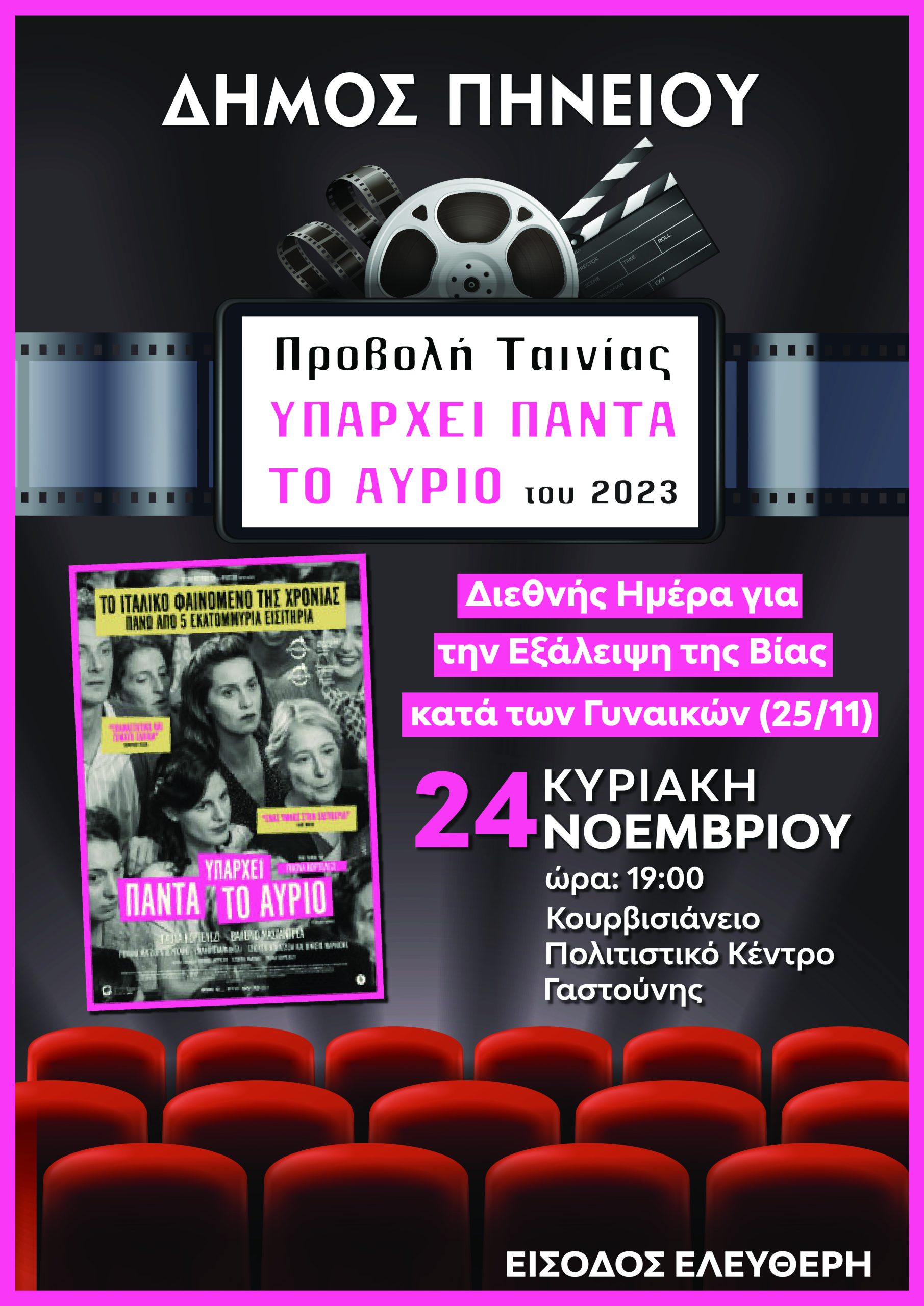ταινίας «Πάντα Υπάρχει το Αύριο», στο Κουρβισιάνειο Πολιτιστικό Κέντρο Γαστούνης.
