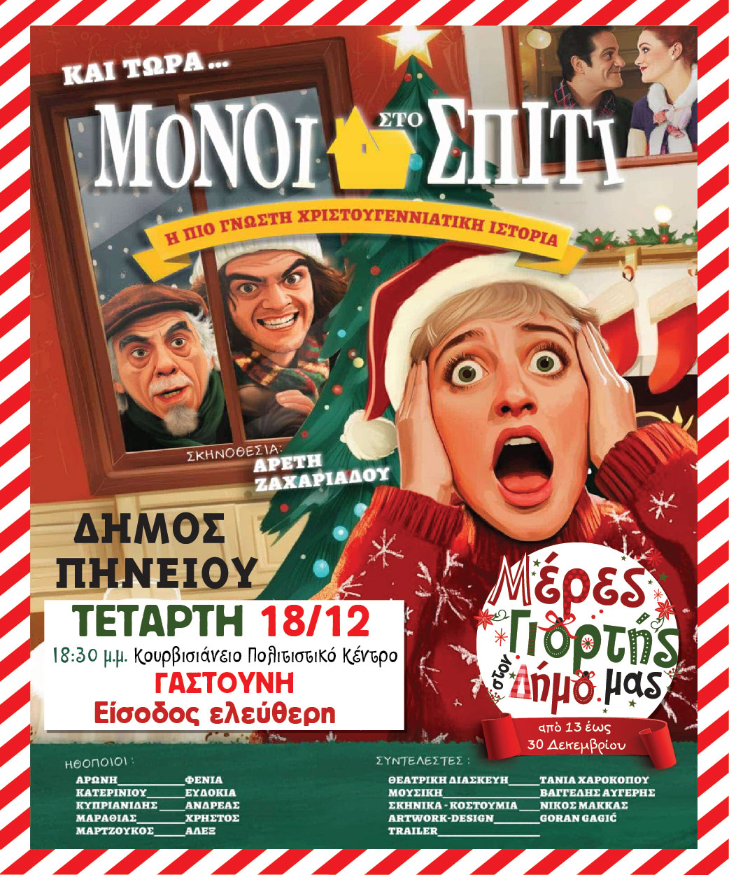 Με την ξεκαρδιστική θεατρική παράσταση «Και τώρα… μόνοι στο σπίτι» συνεχίζονται οι χριστουγεννιάτικες εκδηλώσεις στον Δήμο Πηνειού. Δεκάδες παιδικά χαμόγελα
