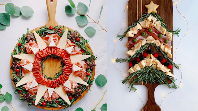 Μπορείτε να επιπλέον να προσθέσετε σε πλατώ αυτής της μορφής αστεράκια από χριστουγεννιάτικα μπισκότα ή και ψωμί ή μαλακό τυρί κομμένο με κουπ πατ μπισκότων σε σχήμα αστεριού.