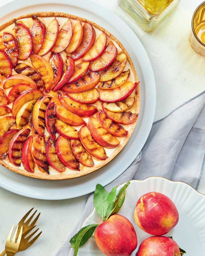 - Αφήνουμε να κρυώσουν και τα τακτοποιούμε όμορφα στην επιφάνεια της τάρτας.