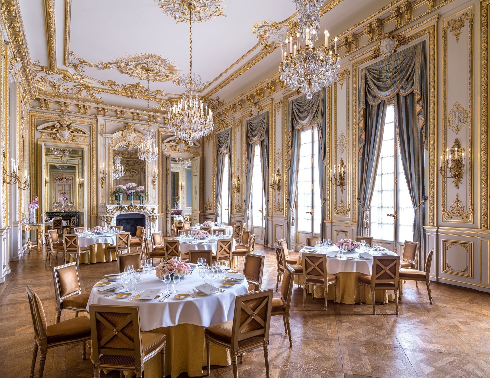 Δεσπόζουν η επιβλητική είσοδος, οι παλιές αίθουσες χορού που έχουν μετατραπεί σε μεγάλες τραπεζαρίες και οι πολυέλαιοι που παραπέμπουν στην μεγαλοπρέπεια μιας άλλης εποχής. Το Shangri-La Paris διαθέτει την ambiance ενός χώρου που ως παλάτι υποδέχτηκε όλη την παριζιάνικη αφρόκρεμα.