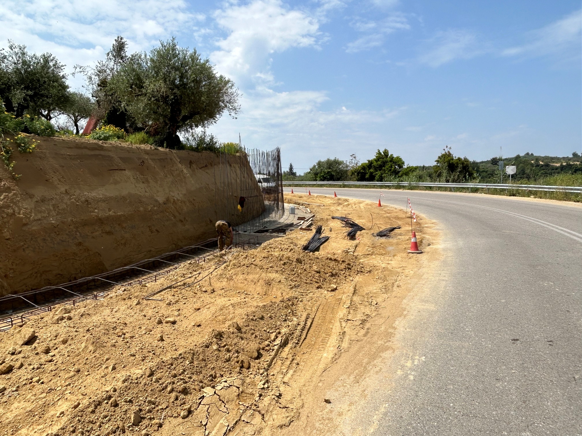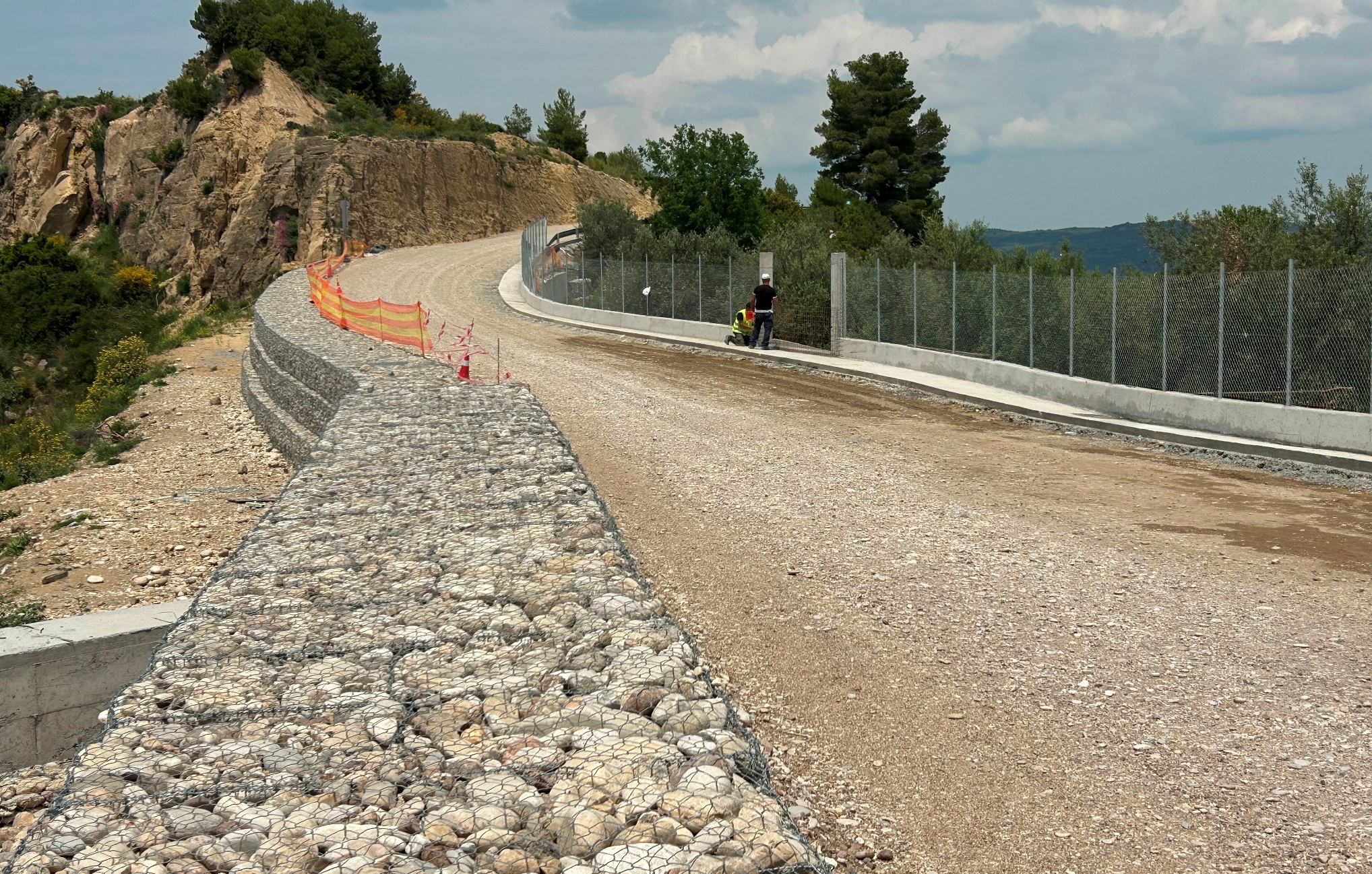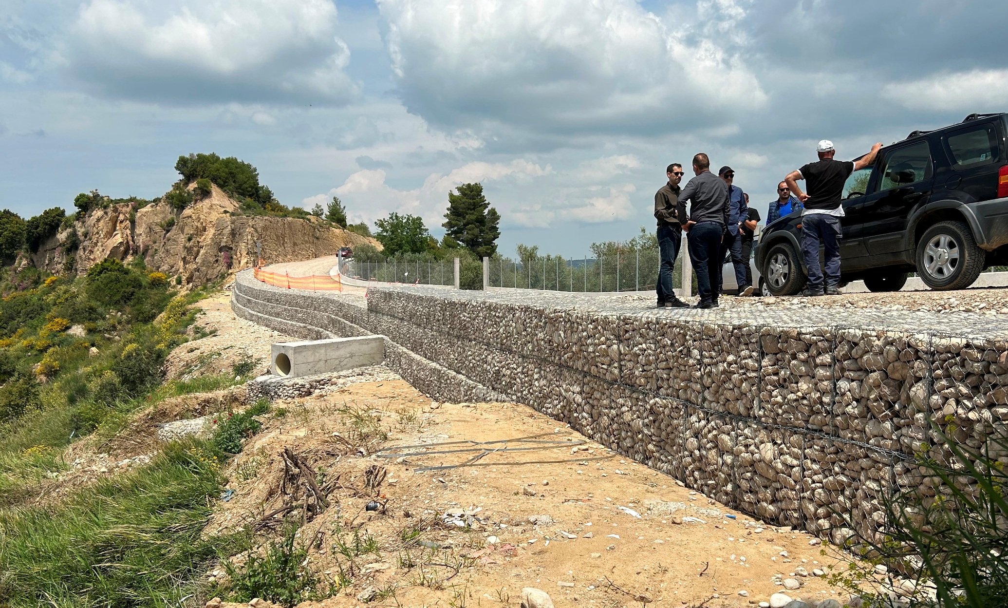 πλήρως η ασφαλής διέλευση και κυκλοφορία των οχημάτων και συνακόλουθα το αίσθημα ασφάλειας για τους κατοίκους της περιοχής και τους διερχόμενους οδηγούς». Σύμφωνα με τη μελέτη, έγινε μετατόπιση του οδικού άξονα προς τα ανάντη και έχει κατασκευαστεί τοιχίο αντιστήριξης, ενώ κατάντη – σε όλο το μήκος της παρέμβασης – έχει κατασκευαστεί διπλή σειρά συρματοκιβωτίων (σαρζανέτ), και θα ακολουθήσει ασφαλτόστρωση, καθώς επίσης οριζόντια και κατακόρυφη σήμανση.