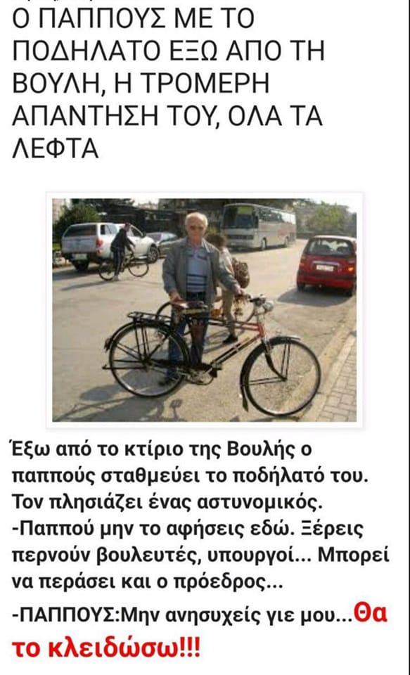 H Βουλή, ο Τροχονόμος και η ατάκα του παππού με το ποδήλατο