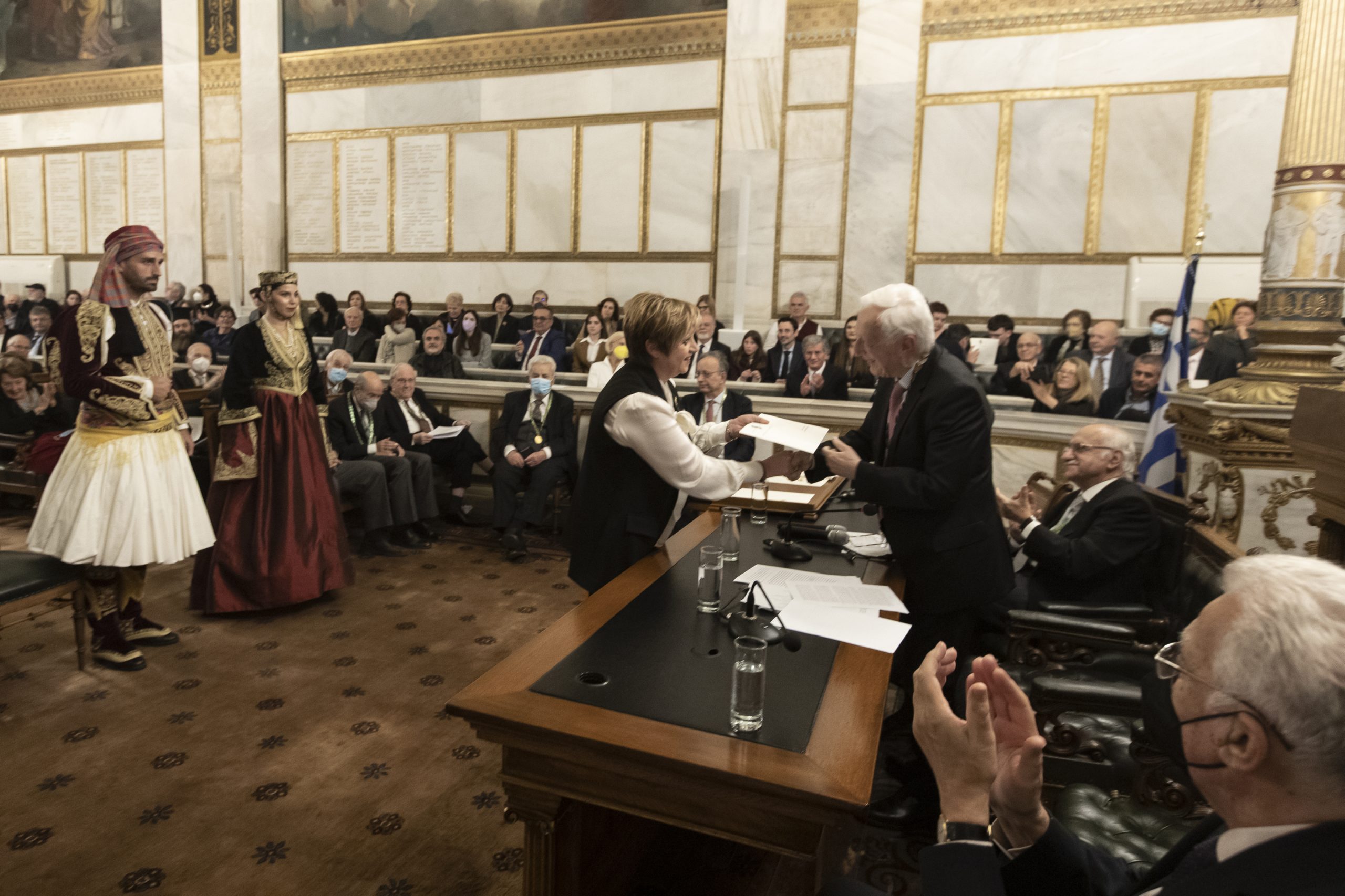 διάκοσμο, τιμήθηκε η πρόεδρος του Λυκείου των Ελληνίδων Πύργου κ Αικατερίνη Παρασκευοπούλου, η Γεν. Γραμματέας Δήμητρα Καχτίτση – Τζαβάρα και όλα τα μέλη του Δ.Σ. Η πρόεδρος παρέλαβε το βραβείο από τον Πρόεδρο της Ακαδημίας κ. Μιχαήλ Σταθόπουλο συνοδευόμενη από δύο χορευτές