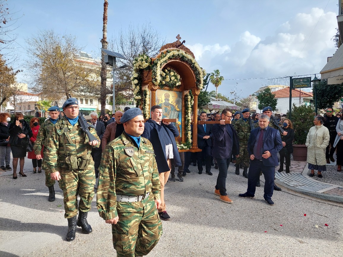 Μετά το πέρας της Λειτουργίας έγινε λιτάνευση της Ιερής Εικόνας στους κεντρικούς δρόμους της πόλης και στη συνέχεια η Δημοτική Αρχή, παραχώρησε στους προσκεκλημένους δεξιώση.