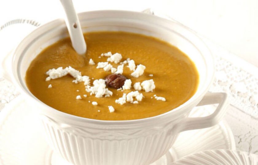 Αυτή η σούπα συνδυάζει μοναδικά δύο υλικά της εποχής την κολοκύθα και τα κάστανα. Το φίνο άρωμα του τσαγιού του βουνού της δίνει ξεχωριστή γευστική διάσταση.