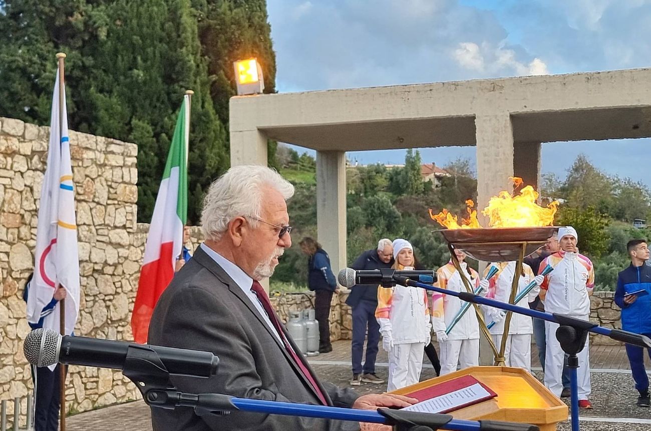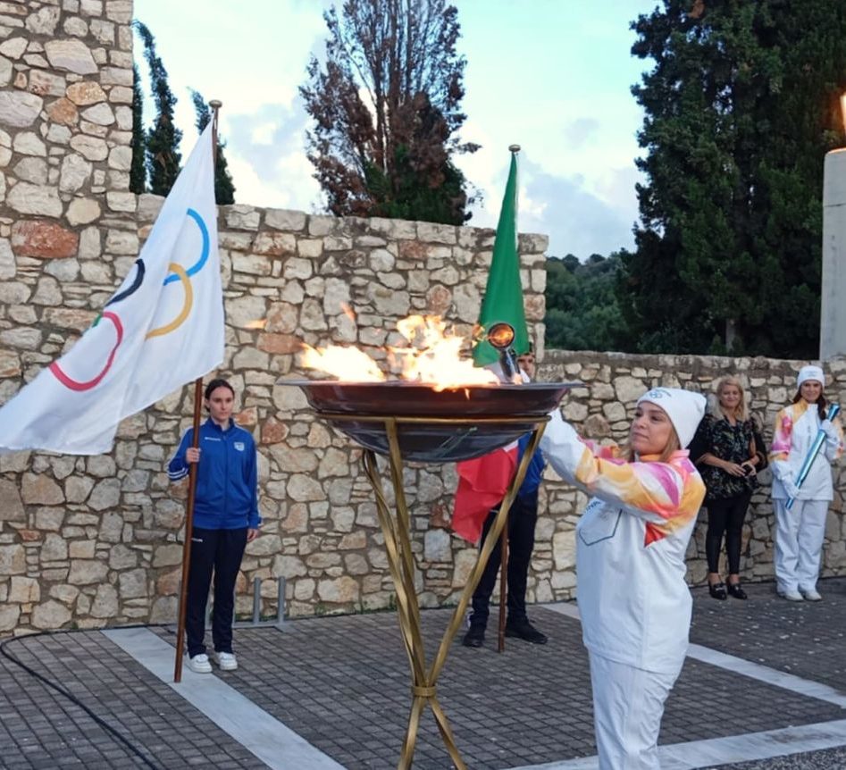 Αμέσως μετά, η παρουσιάστρια της Τελετής κα Κωνσταντίνα Θεοδόση, ανήγγειλε την κορυφαία στιγμή της τελετής, σηματοδοτώντας την άφιξη και την αφή της Φλόγας στον Ιερό Βωμό από τη θρυλική Ελληνίδα αθλήτρια της σκοποβολής, Άγη Κασούμη, η οποία επί 40 χρόνια κατείχε τον τίτλο της πρωταθλήτριας Ελλάδας και παραμένει η μοναδική Ελληνίδα στην ιστορία με έξι συμμετοχές σε Ολυμπιακούς Αγώνες. Στη συνέχεια απηύθυναν χαιρετισμούς ο Δήμαρχος Ήλιδας κ. Χρήστος Χριστοδουλόπουλος, ο Ολυμπιονίκης και εκπρόσωπος της Οργανωτικής Επιτροπής «MILANO – CORTINA 2026» κ. Alessio Boggiatto και ο Πρόεδρος της Επιτροπής Ολυμπιακής Λαμπαδηδρομίας της ΕΟΕ κ. Θωμάς Τόκας, εξαίροντας και οι τρεις τη σημασία της άφιξης της Φλόγας στην ιστορική γενέτειρα του Ολυμπισμού.