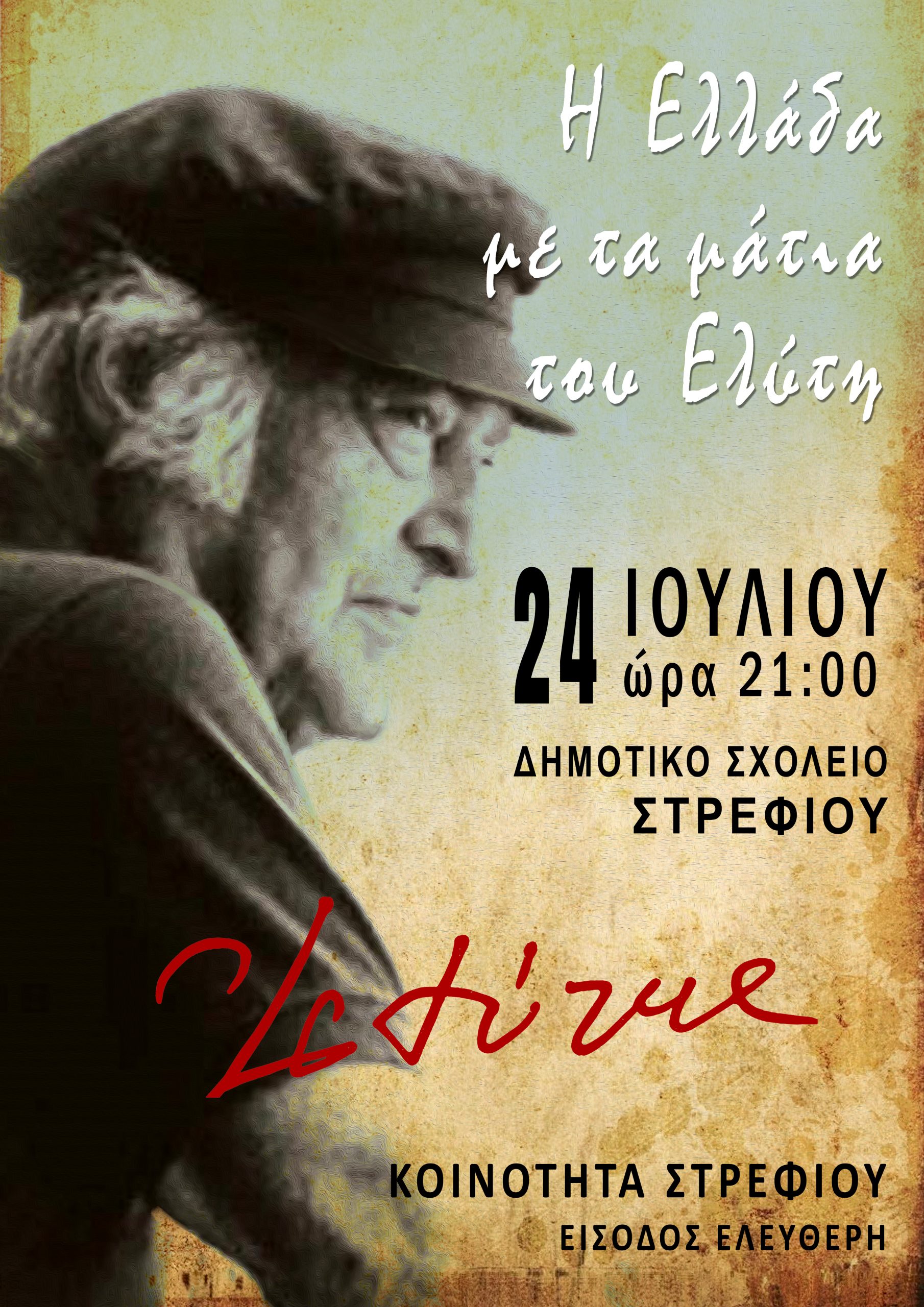 θέμα «Η Ελλάδα με τα μάτια του Ελύτη», το Σάββατο,